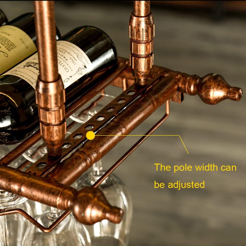 Rustic Wine Rack Wall Mounted with Glass Holder, Adjustable Hanging Bar Wine Glass Rack Ceiling, 47.2in Bottle Holder Wine Shelf Shelves, Perfect for Bar Kitche