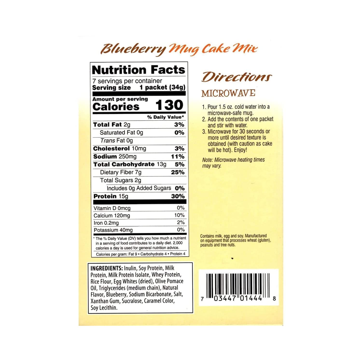 FITWISE - High Protein Mug Cake Mix, 15g Protein, Low Calorie, Low Net Carbs, Low Fat, High Fiber, Gluten Free, Ideal Protein Compatible, 7 Servings Per Box (Blueberry)