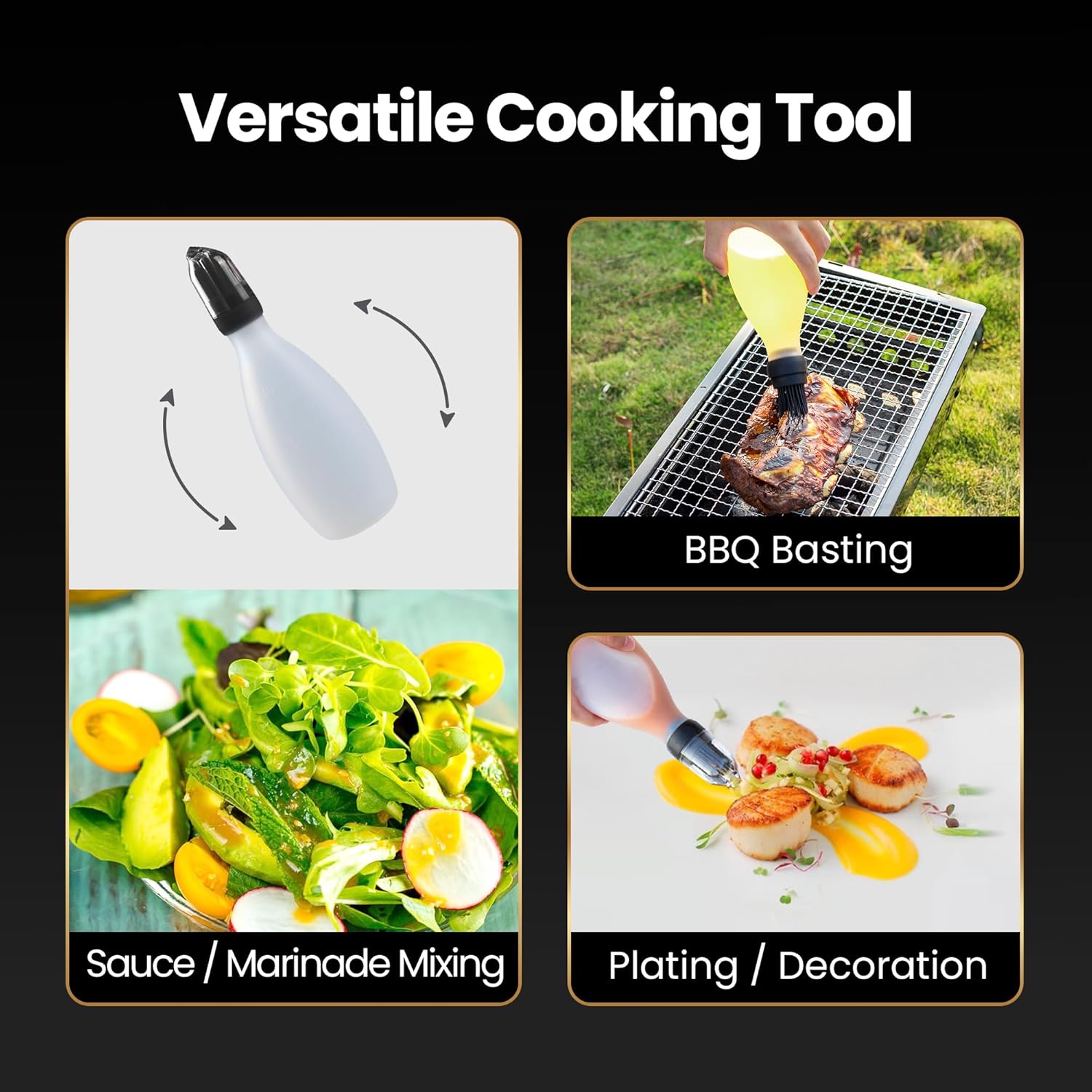 - BUILT-IN BRUSH FOR EASY BASTING – Featuring a silicone basting brush, simply squeeze the bottle to dispense sauce through the oil brush and tilt to coat food evenly. The flexible design ensures smooth application, making it a reliable baking gadget for grilling and cooking.
