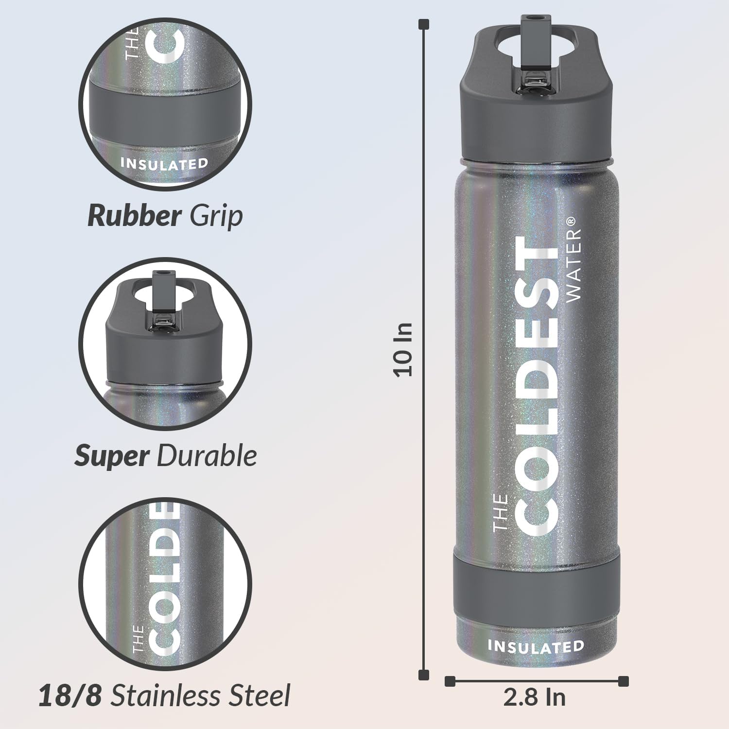 - 𝐀𝐃𝐕𝐀𝐍𝐂𝐄𝐃 𝐈𝐍𝐒𝐔𝐋𝐀𝐓𝐈𝐎𝐍 𝐓𝐄𝐂𝐇𝐍𝐎𝐋𝐎𝐆𝐘: Coldest reusable water bottles are your solution to tepid sips. With the world's first fully insulated straw lid, this bottle keeps your drink cold for 36+ hours and hot for 13+ hours, ensuring your drink stays at the perfect temperature throughout the day. Cold-tested against 50+ leading brands, its superior performance guarantees an unmatched experience. Upgrade now to the Coldest Water Bottle and bid farewell to temperature woes.