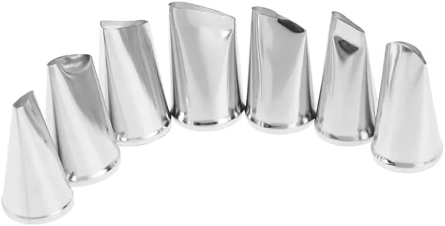 - FLOWER PIPING TIPS SET:Includes 7 pcs cake decorating tips for roses and other flower petals,ruffles or elegant drapes and bows.