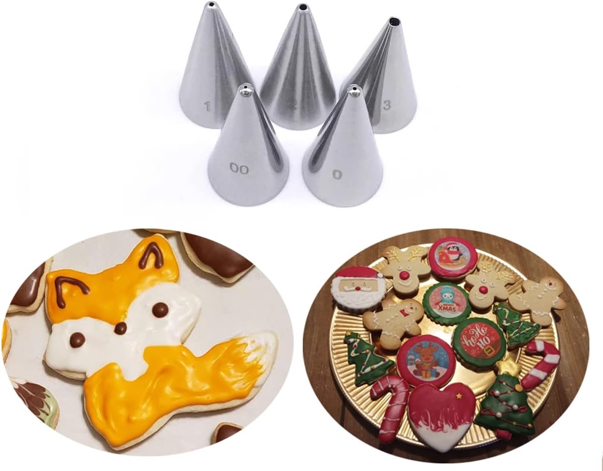 - ROUND ICING TIPS SMALL:Great sugar cookie decorating tip,would also be good sizes for writing on cakes(Mouth diameter: 0.6mm/0.75mm/1mm/1.5mm/2mm).