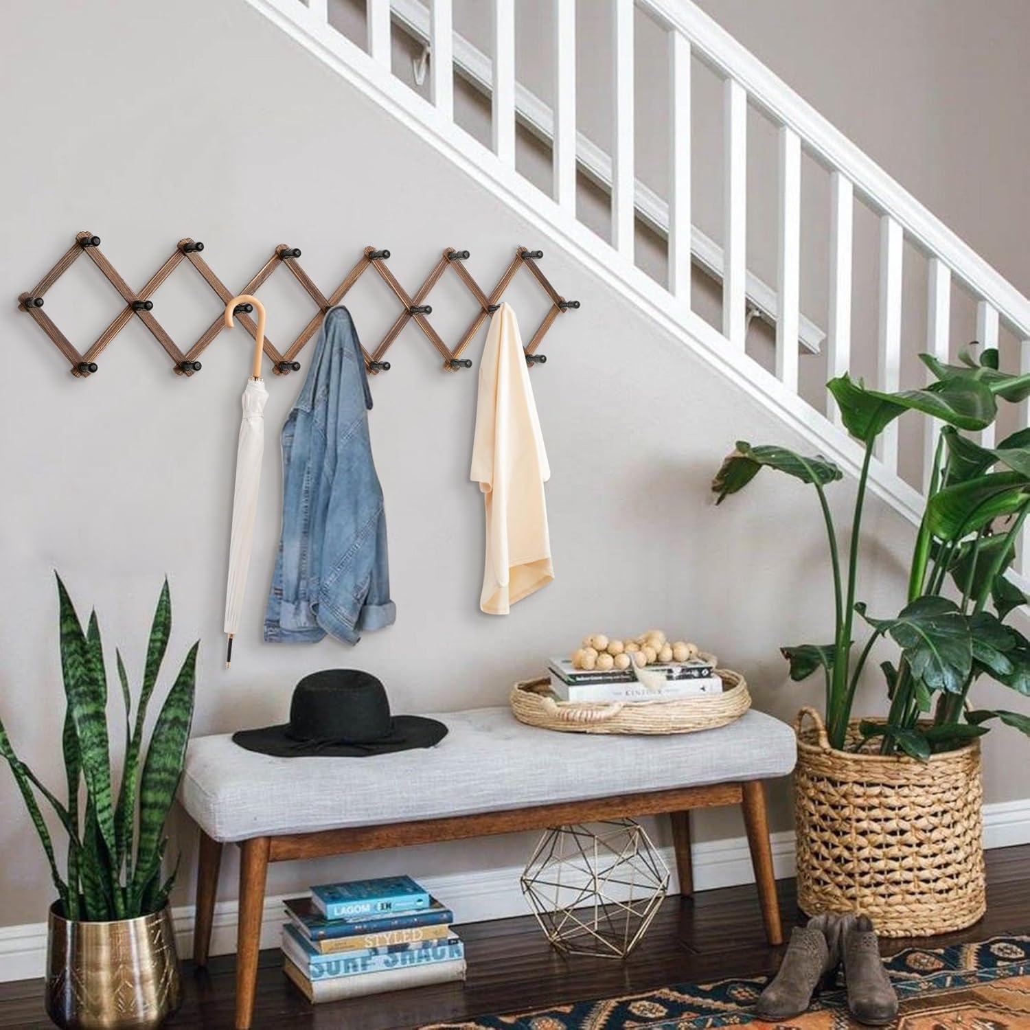 - 【Expandable Coat Rack】Our accordian wall hanger is adjustble for your requirements of home. Easily adjustable to the required width. If you’re sick of sweaters, jackets, and hats finding themselves strewn about your home, this coat rack is the perfect pick