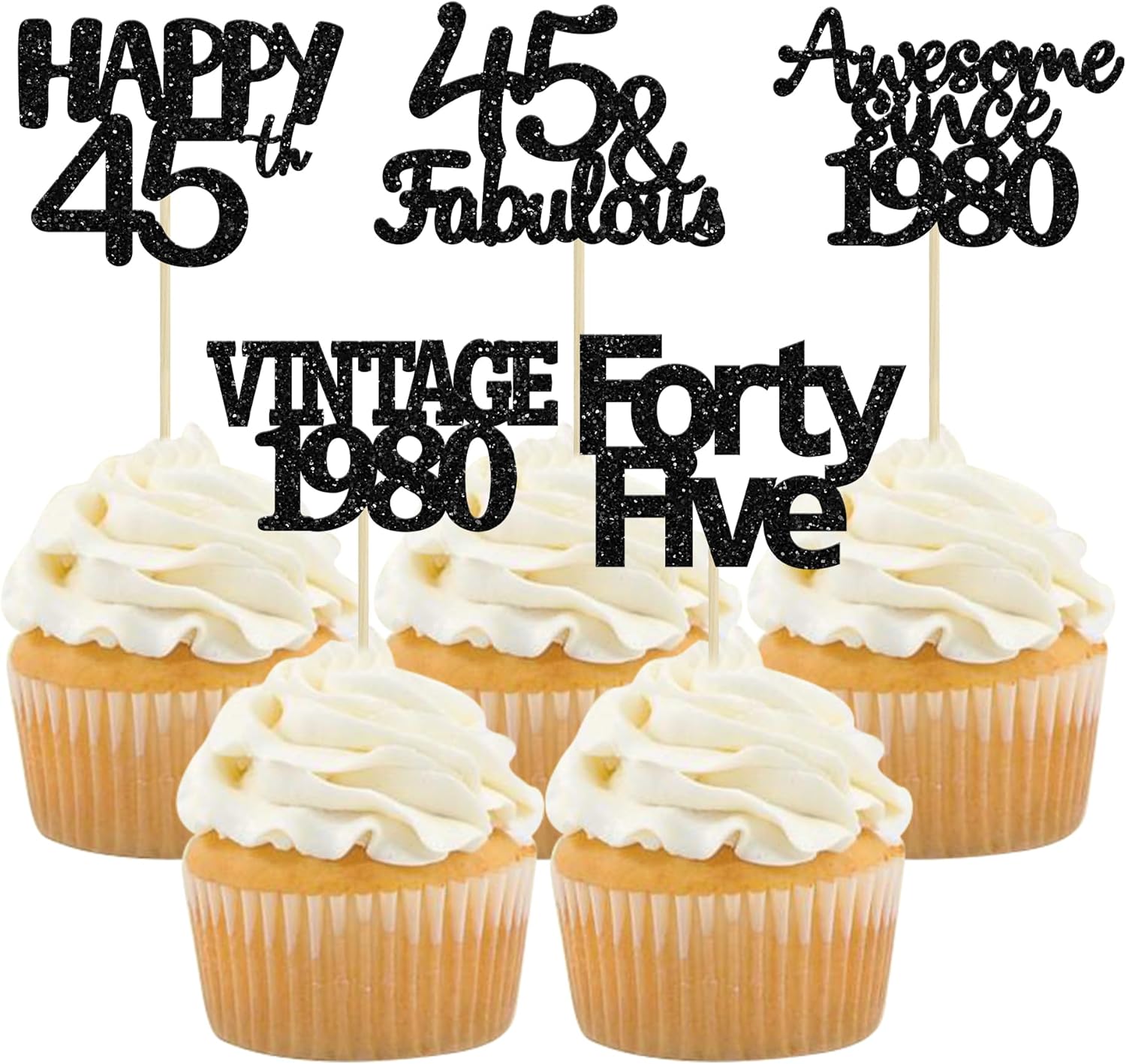 Gyufise 30 Pack Black Glitter 45th Birthday Cupcake Toppers Vintage 1980 Awesome Since 1980 45 Fabulous Cupcake Picks 45th Birthday Wedding Anniversary Party Cake Decorations Supplies