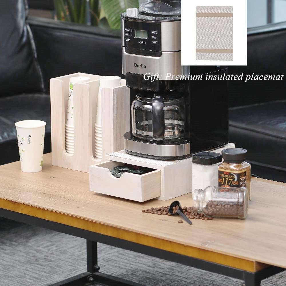 - [PREMIUM INSULATED PLACEMAT]On the top of the wood cabinet is a pieceof complimentary premium placematheat which is heat resistant and easy to clean, perfect for coffee brewer /coffee maker,tea potor holder, or as other kitchen accessories machine storage stand shelf.