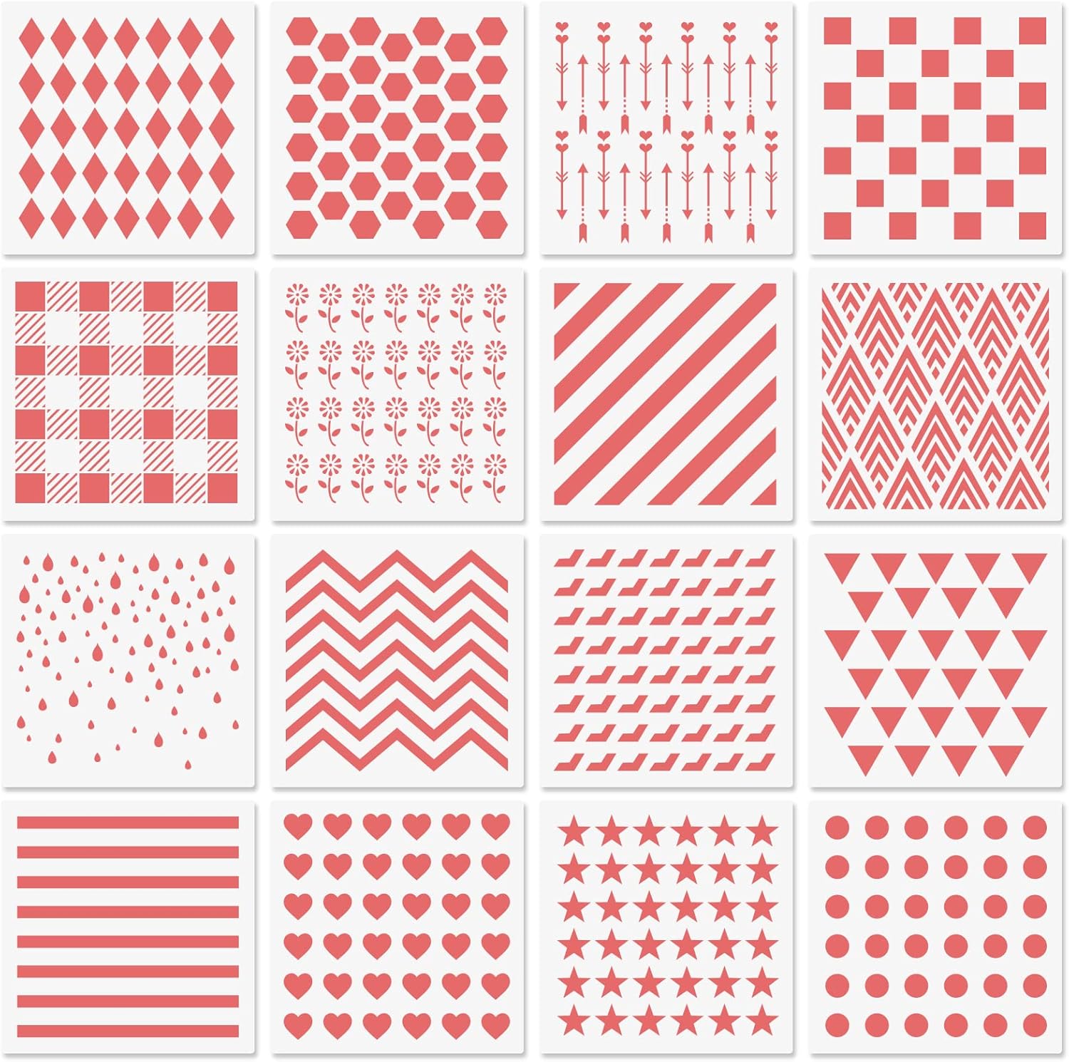6x6in Cookie Stencils for Royal Icing Cookies Sugar Cookie, 16 Pcs Reusable Plastic Biscuit Cake Stencils with Checkered Buffalo Plaid Star Dots Shape for Airbrush Baking Craft Drawing DIY Art Decor