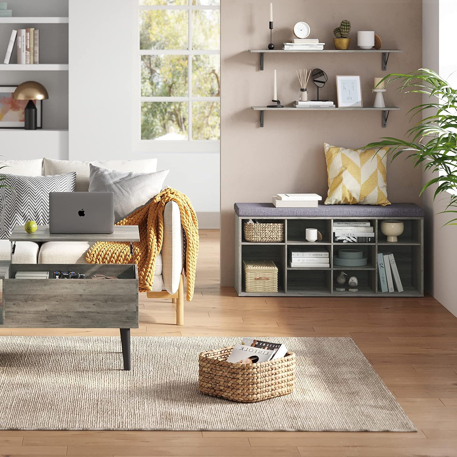 - 【Beautify Your Home】Elegant grey wash color complements tough lines, rusticity wood grain and industrial design add a classic and stylish vibe to your home. A perfect combination of wood and iron, bringing you a cozy life easily by placing some decorations. Matches with any wall perfectly