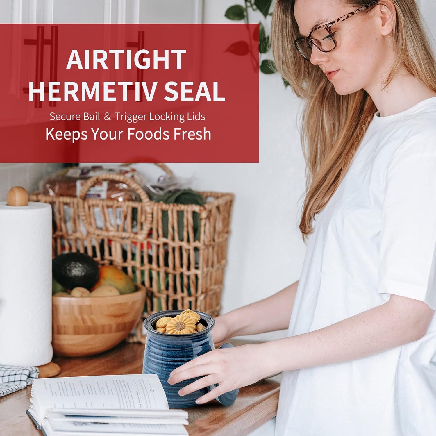 - Keep Your Food Fresh: Upgraded ceramic lid with an airtight seal ring and easy-grip handle ensures a secure fit, keeping air and moisture out. This container creates an enclosed environment, helping preserve the freshness of your food for longer periods