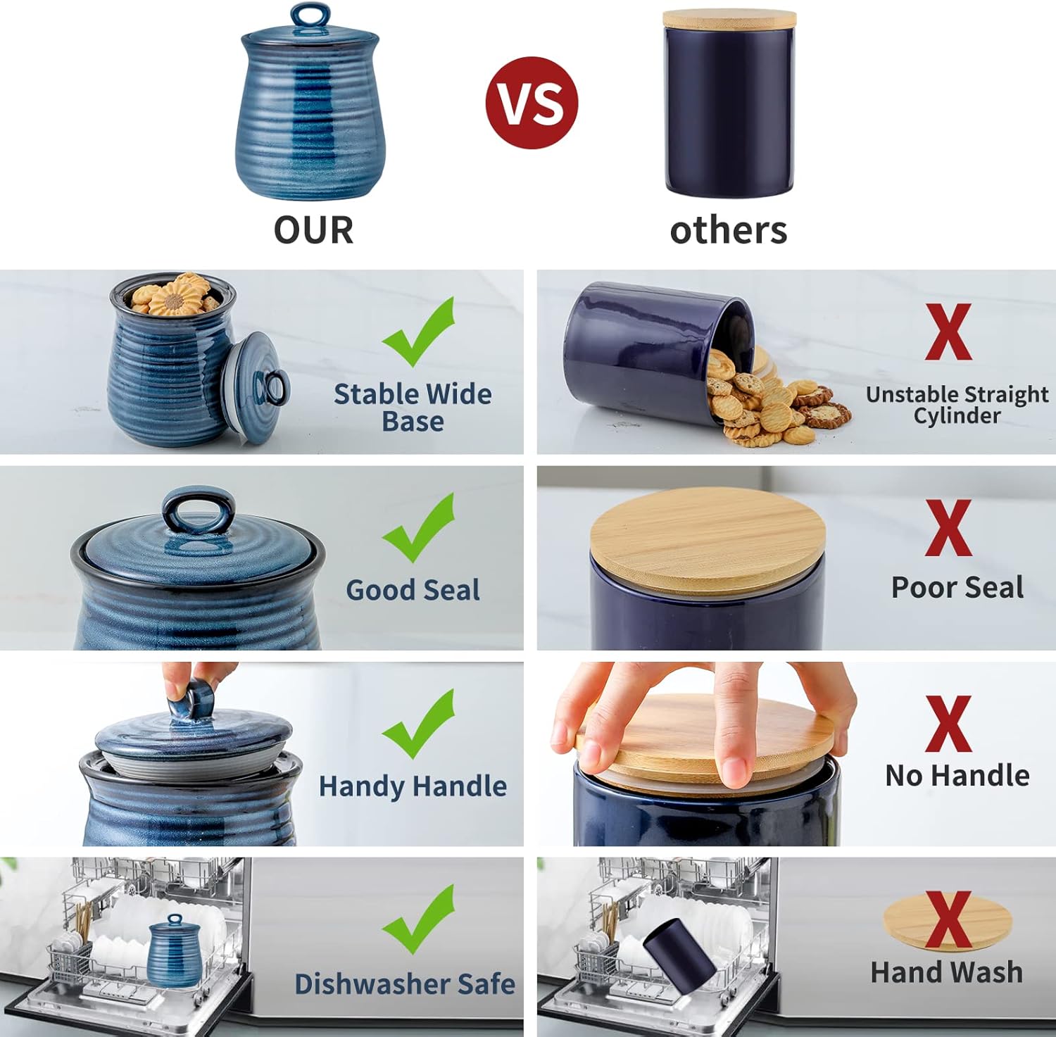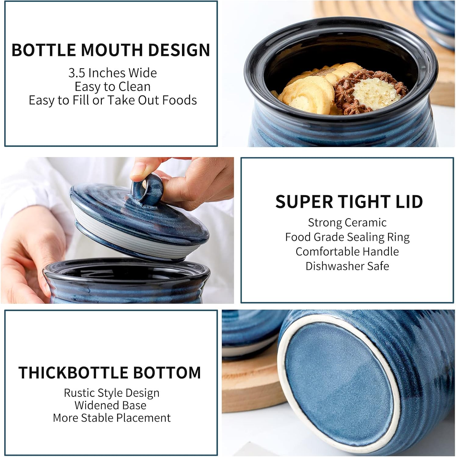 - Easy to Clean and Maintain: The smooth ceramic surface of this jar for tea, cookies, and sugar is easy to wipe clean with a damp cloth; the removable lid allows for thorough cleaning, making it a low-maintenance storage solution for busy kitchens