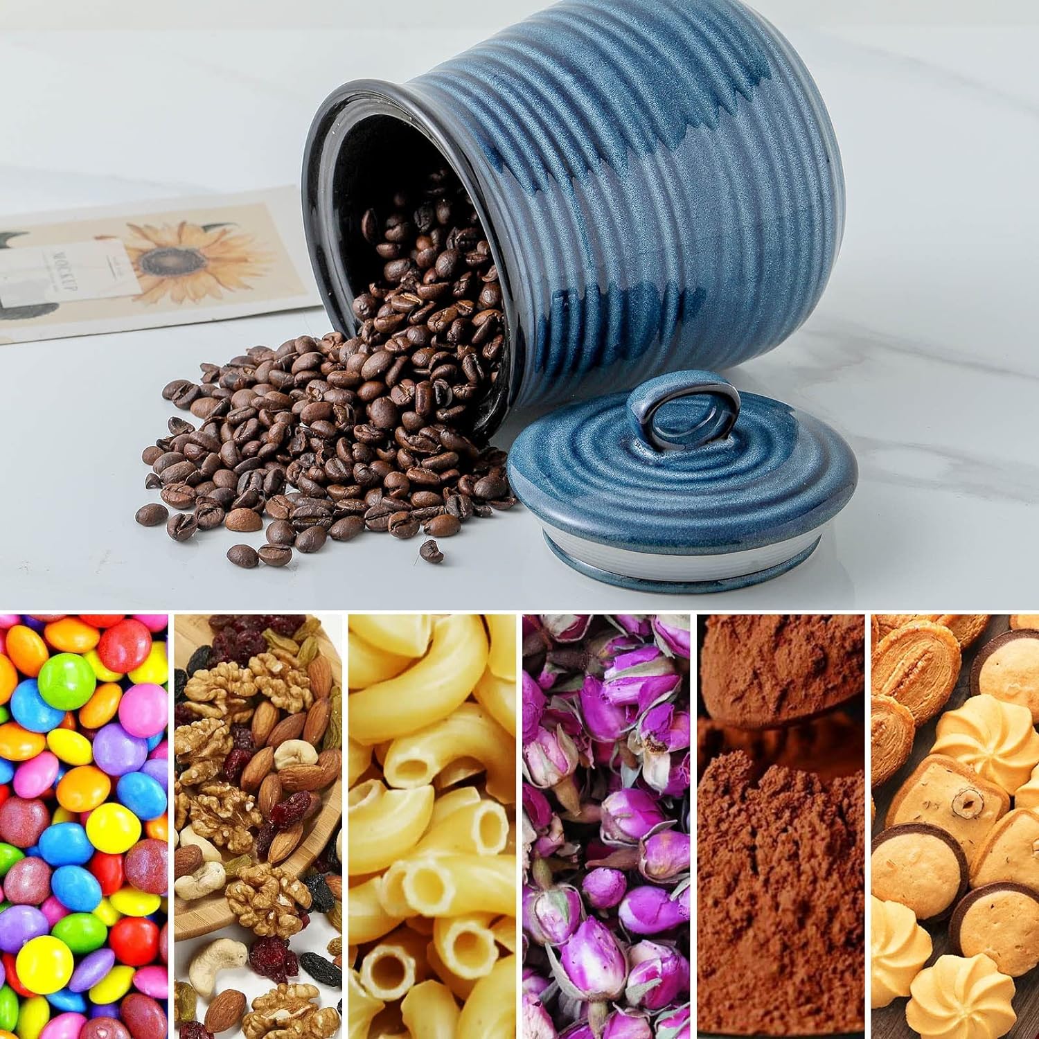 - Fill with Anything You Want: This ceramic candy jar is great for storing cookies, candy, coffee beans, flour, sugar, tea, or rice. It also works as a dog food jar, makeup brush holder, or decorative vase, helping keep your kitchen and home organized and clutter-free
