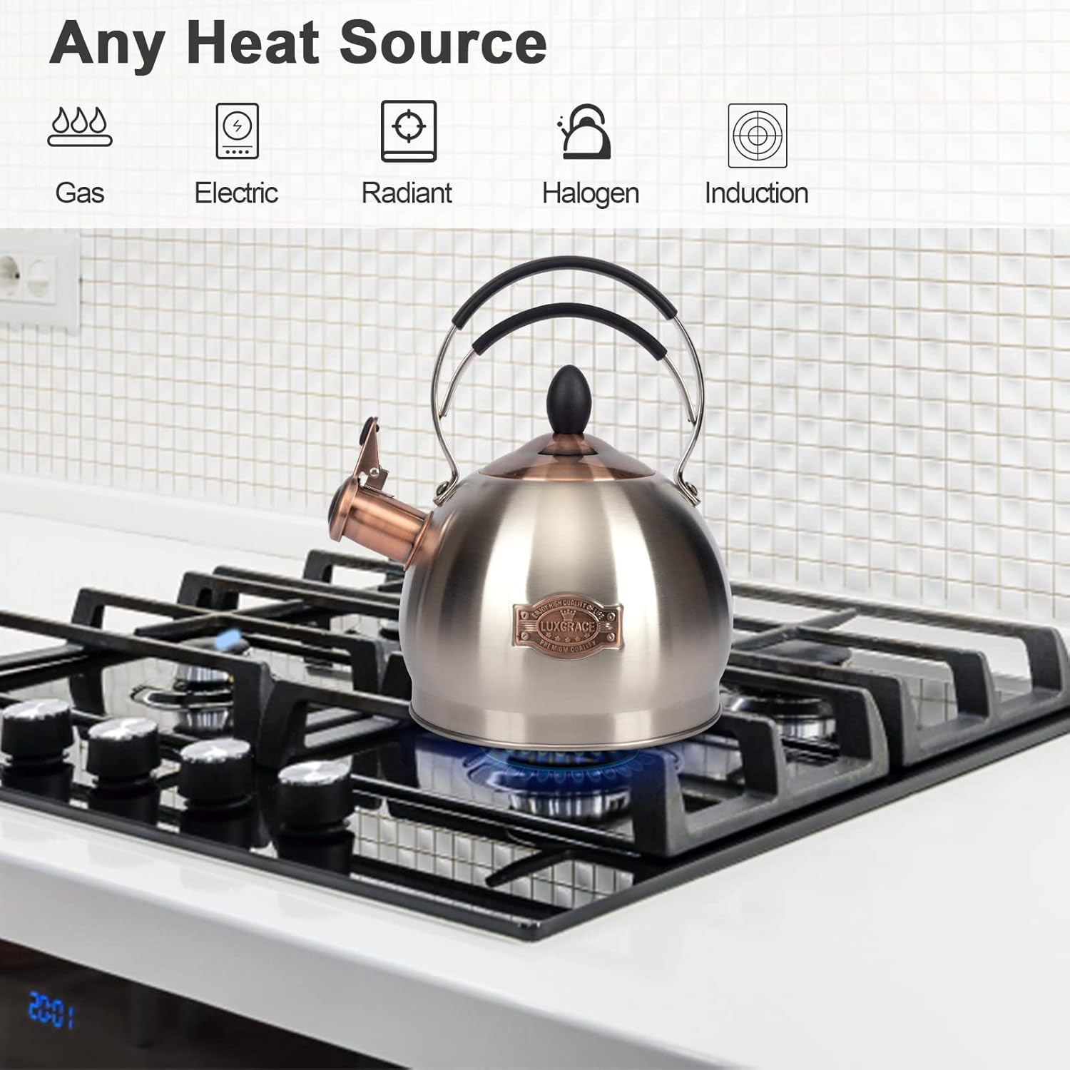 Whistling Tea Kettle Stainless Steel Teapot, Teakettle for Stovetop Induction Stove Top, Fast Boiling Heat Water Tea Pot 2.6 Quart