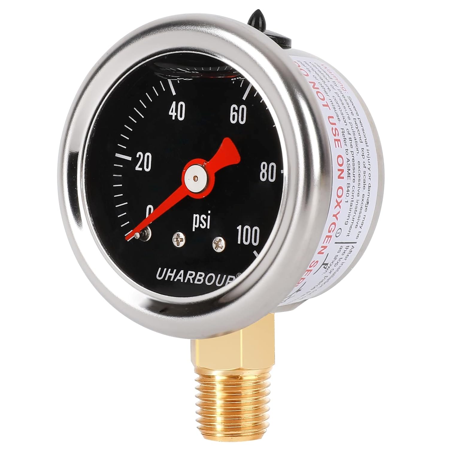 - LIQUID FILLING WITH 1-1/2" CLEAR Black DIAL : Glycerin oil filled to enhance the reliability and integrity; helps dampen the effect of vibration and pulsation; Clear Black dial with single colors scales make it easy to read;