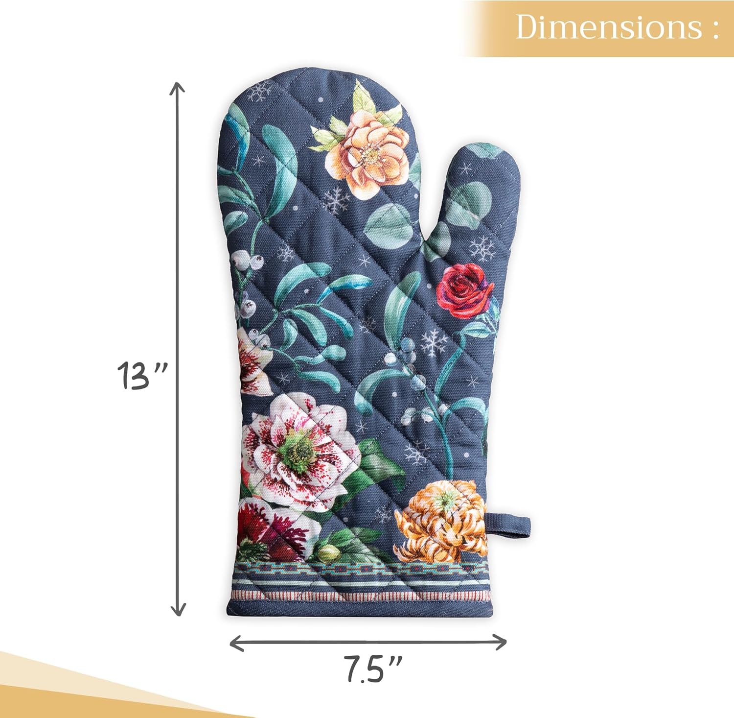 Maison d' Hermine Oven Gloves 100% Cotton Oven Mitt 7" x 13" with Loop Heat Resistant, BBQ, Cooking Gloves, Baking, Grilling, Kitchen, Handling Hot Pans (Pack of 1, Christmas Joy)