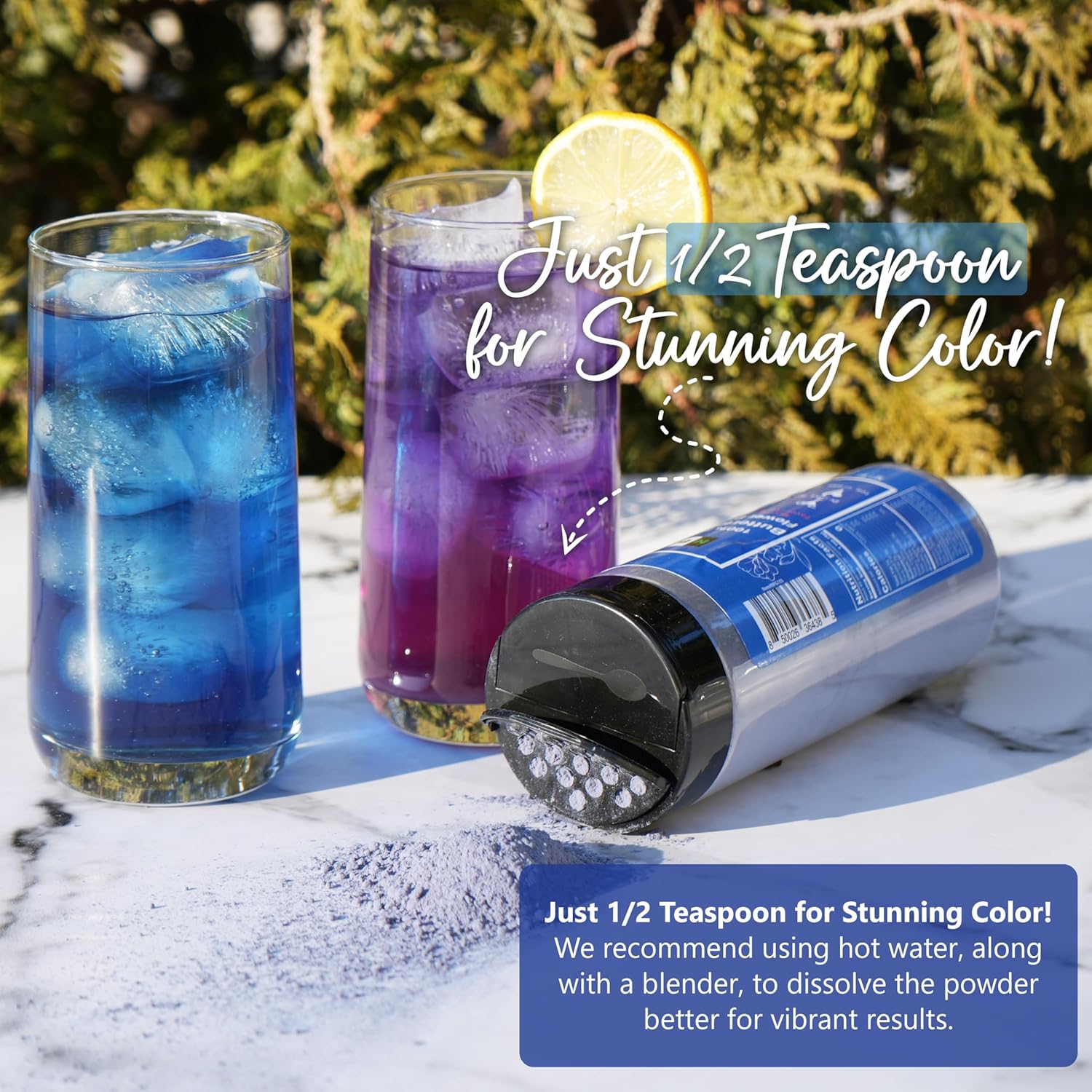 - Pre-grounded Blue Butterfly Pea Flower Powder: Great for mixing into your favorite drinks, beverage, coffee, smoothies, and baked goods.