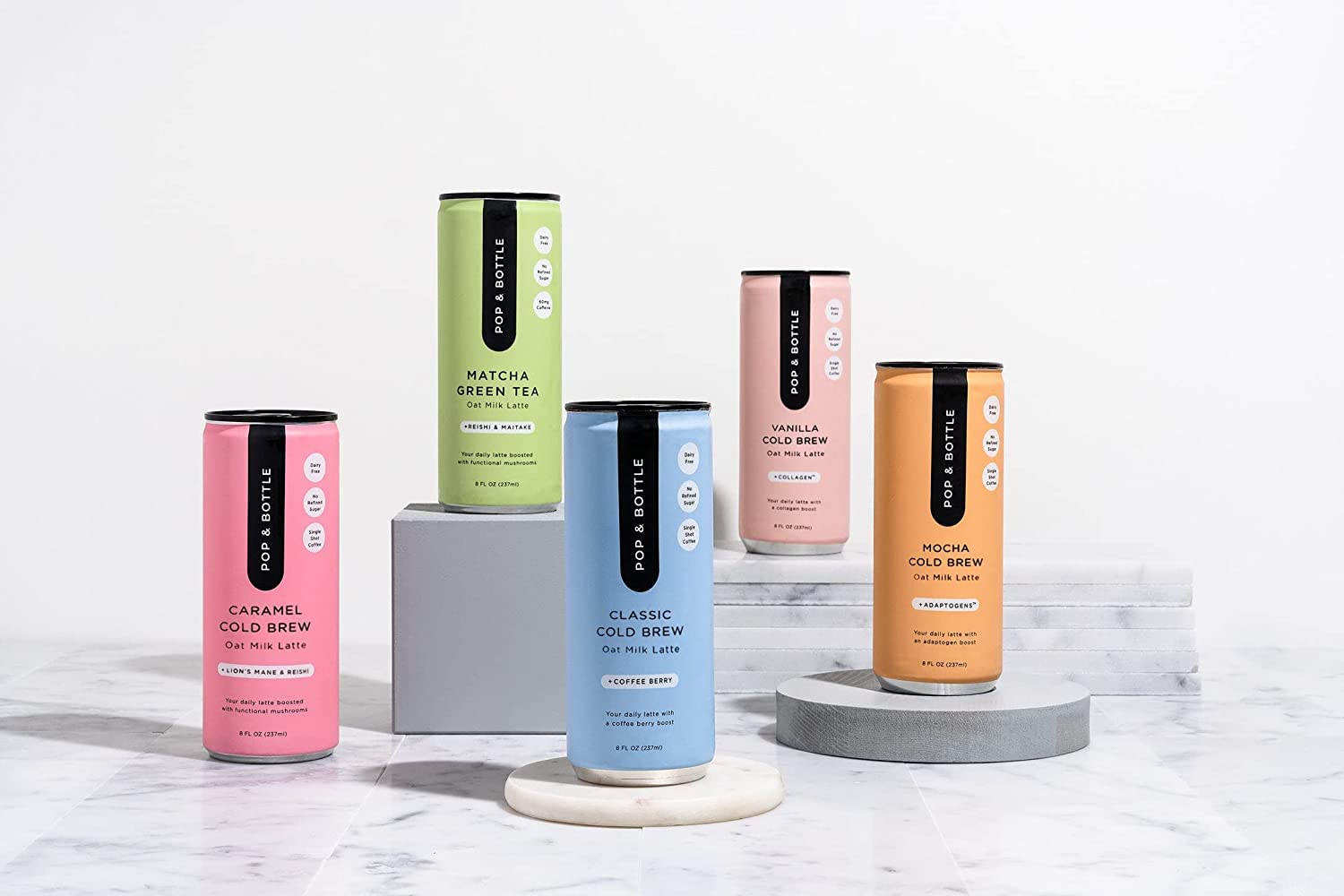 - CANNED COFFEE DRINKS - Pop and Bottle oat milk latte drinks are crafted to help jumpstart your day with organic ingredients & supplements to keep you going while at home or on the go.