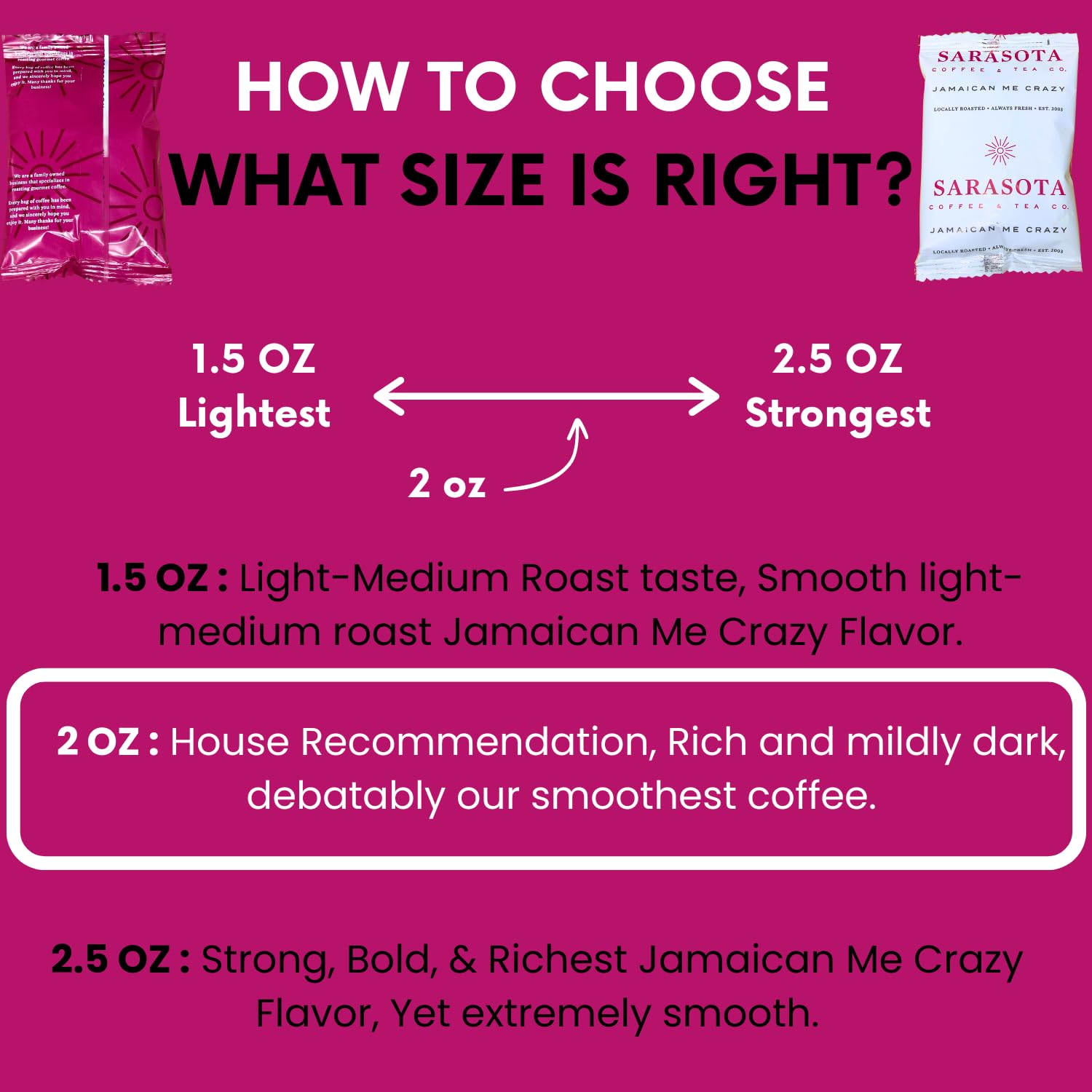 Sarasota Coffee Ground Packets | Gourmet Flavored Medium Roast Bulk Coffee Packs | Jamaican Me Crazy | Low Acid Mold Free Singles Individual Pouches for 12 Cup Coffee Maker | 2 Ounce Bags, 36 Count