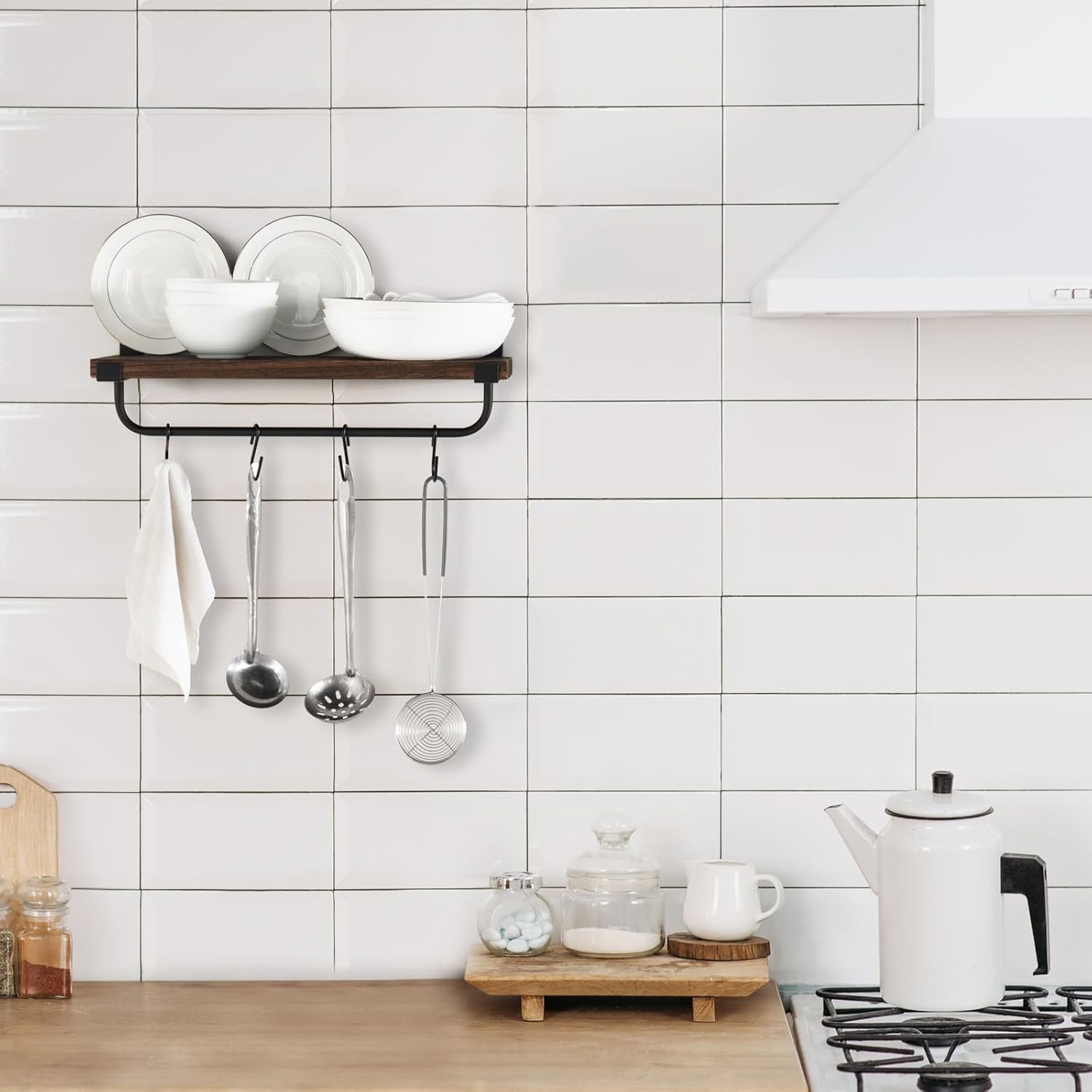 - Rustic Floating Mug Shelf: Made of paulownia wood and industrial metal bracket processed with matte finish features a rustic style, matches with almost any wall.