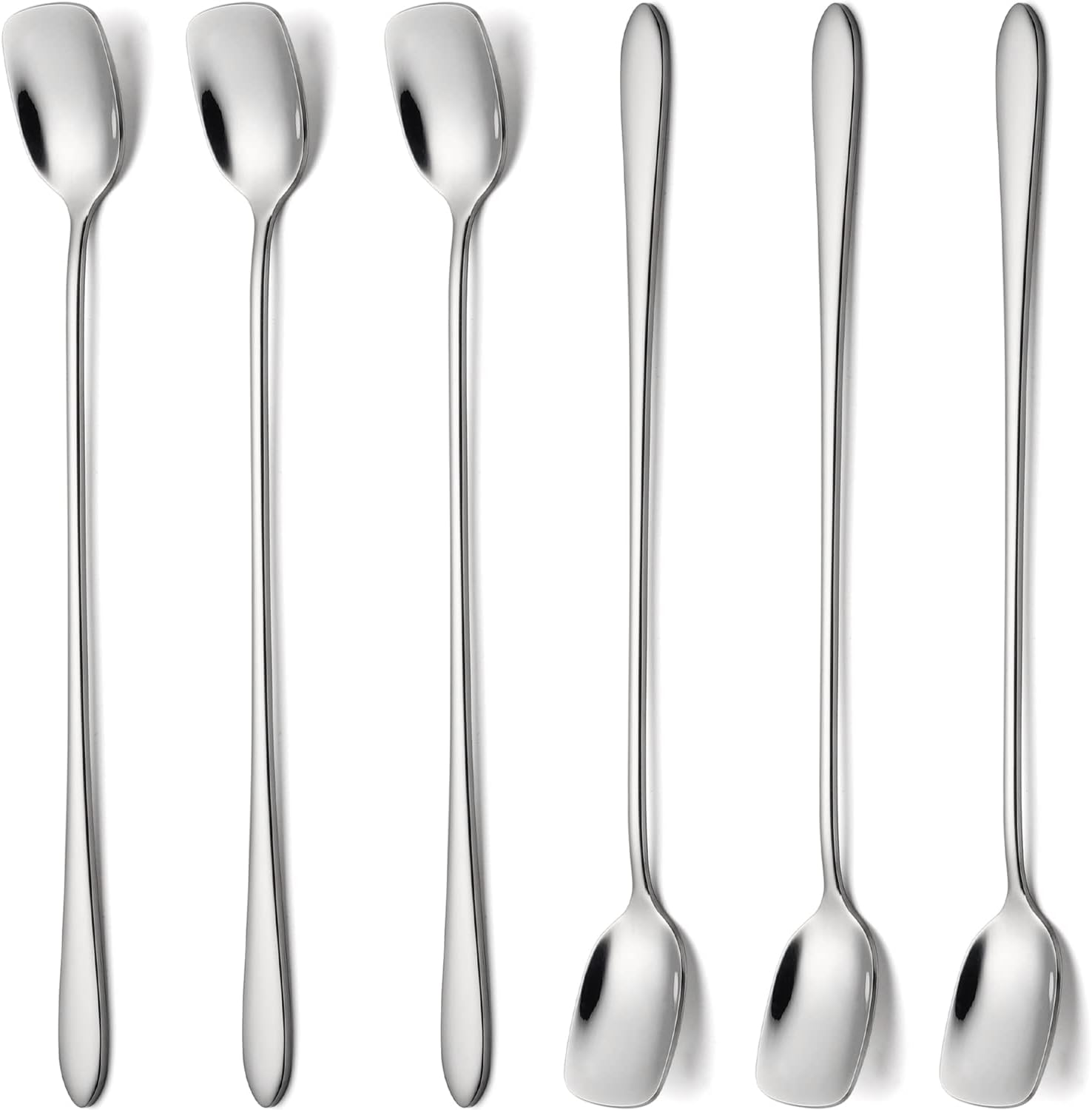Long Coffee Spoons Steel Set of 6 Stainless Coffee Stirrer Iced Cream Scoop Cocktail Mixing Spoons (6)