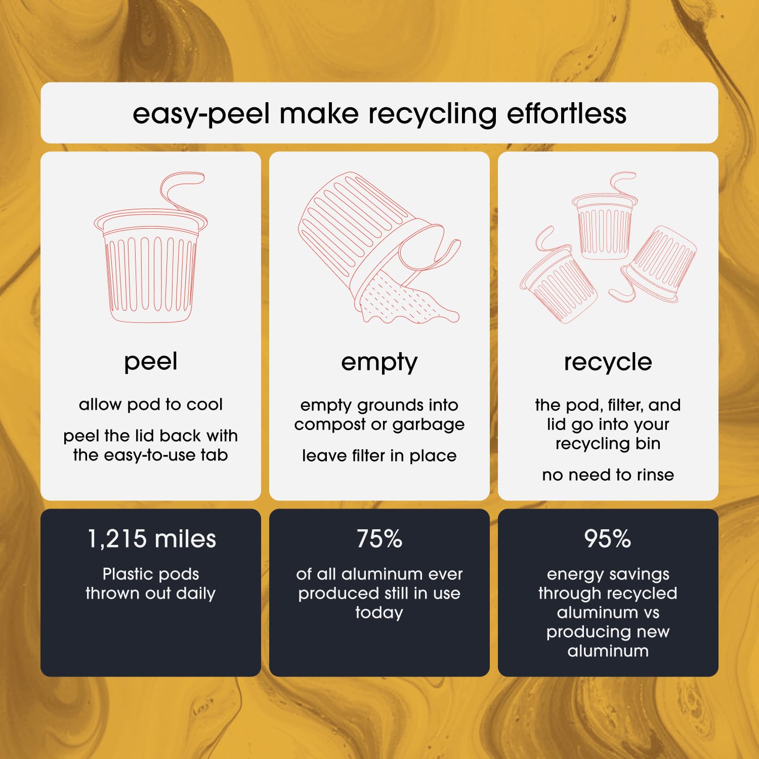 - Flavor Ridges: Each aluminum coffee k cup is designed with Flavor Ridges that provide more surface area for Cambio Coffee grounds, promoting more thorough water interaction during brewing. This optimized coffee pod design extracts 34% more flavor compared to standard pods.