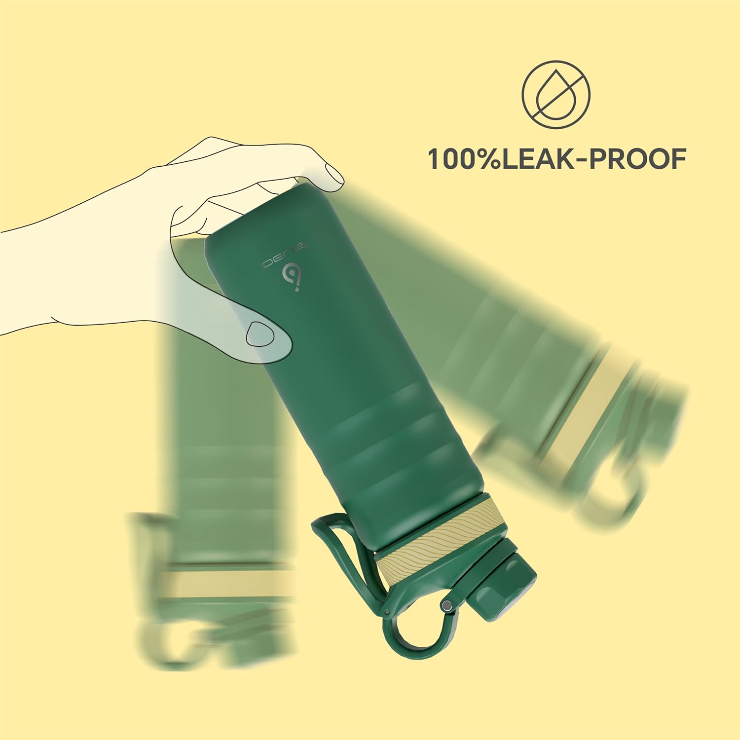 IDEUS Insulated Stainless Steel Water Bottle with 2 Leak-Proof Lids, Thermal Water Flask for Hiking Biking, 24oz, Green