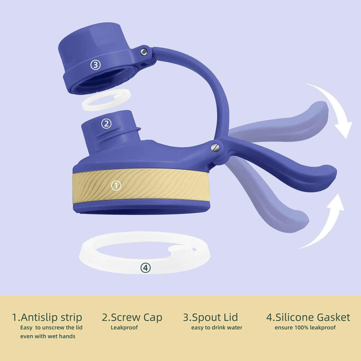 IDEUS Insulated Stainless Steel Water Bottle with 2 Leak-Proof Lids, Thermal Water Flask for Hiking Biking, 18oz, Purple
