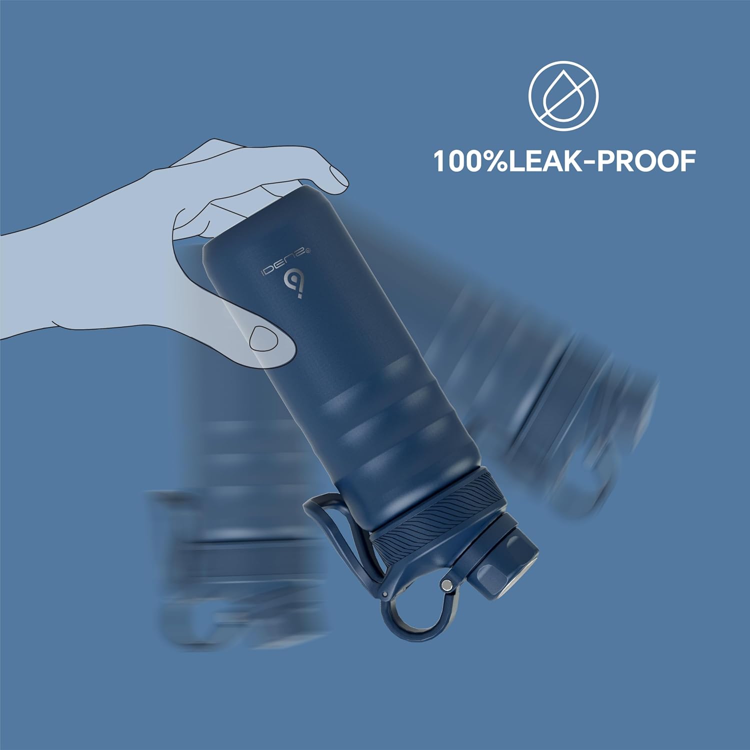 IDEUS Insulated Stainless Steel Water Bottle with 2 Leak-Proof Lids, Thermal Water Flask for Hiking Biking, 18oz, Navy Blue
