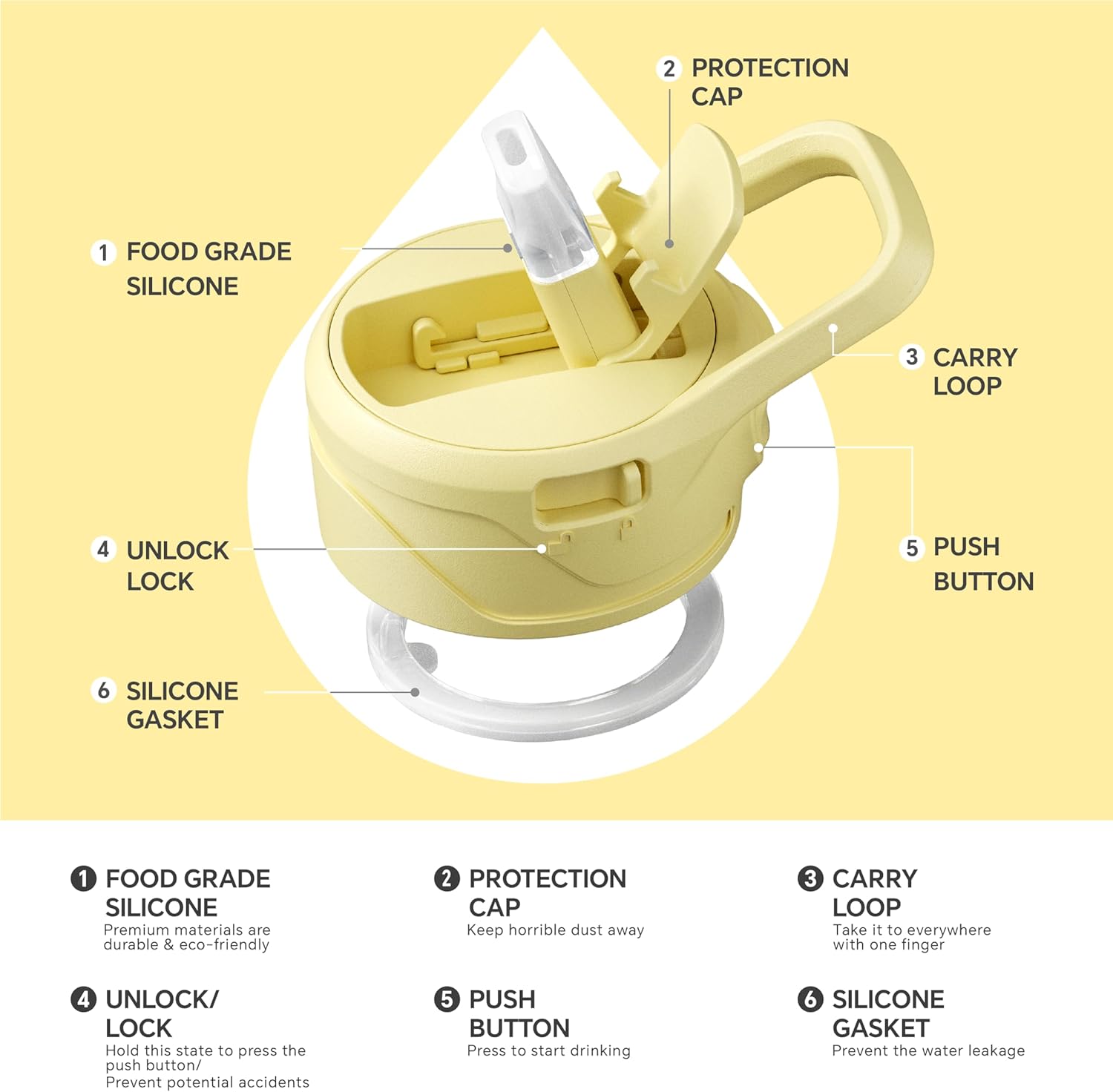 IDEUS Insulated Stainless Steel Water Bottle with 2 Leak-Proof Lids, Thermal Water Flask for Hiking Biking, 18oz, Light Yellow