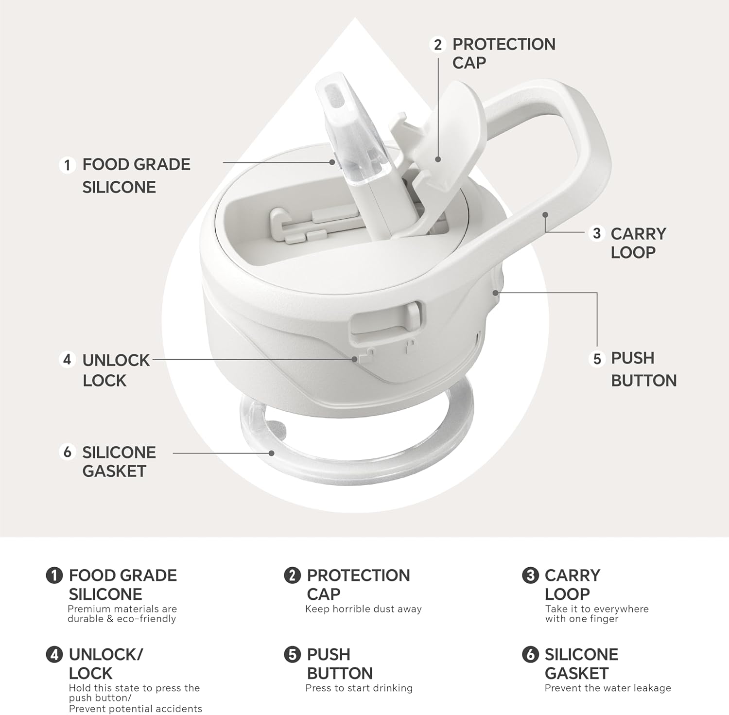 IDEUS Insulated Stainless Steel Water Bottle with 2 Leak-Proof Lids, Thermal Water Flask for Hiking Biking, 32oz, White