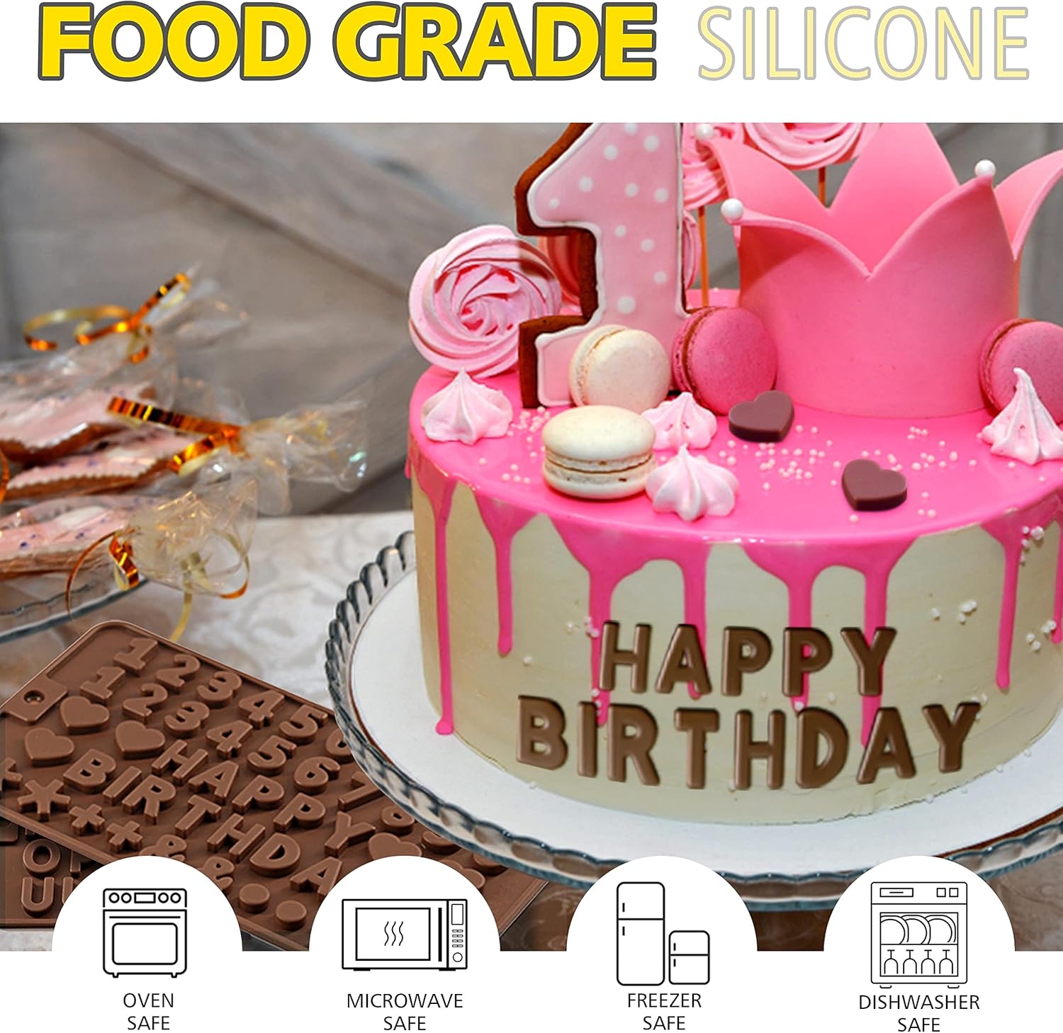 Anaeat Silicone Letter and Number Chocolate Molds, 2 Pack Alphabets & Numbers Candy Baking Mold with Happy Birthday Cake Decorations Symbols - for DIY Chocolates, Candies or Fondant