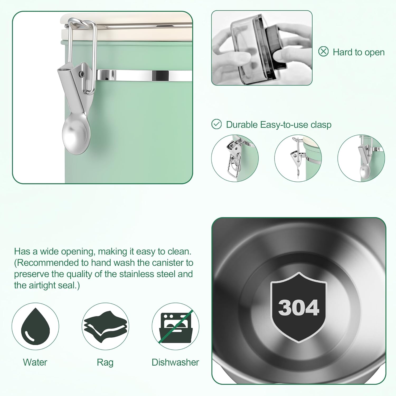 - 【CARE & WARRANTY】Backed by a 1-year warranty for peace of mind. Designed with a color-coordinated lid and silicone seal, this canister combines function with visual appeal, making it a must-have for any kitchen. To clean, simply hand wash with warm, soapy water and dry thoroughly before refilling. Avoid using abrasive cleaners or scrubbing pads that could damage the stainless steel finish. Regularly inspect the silicone seal to ensure proper function, and replace it as needed.