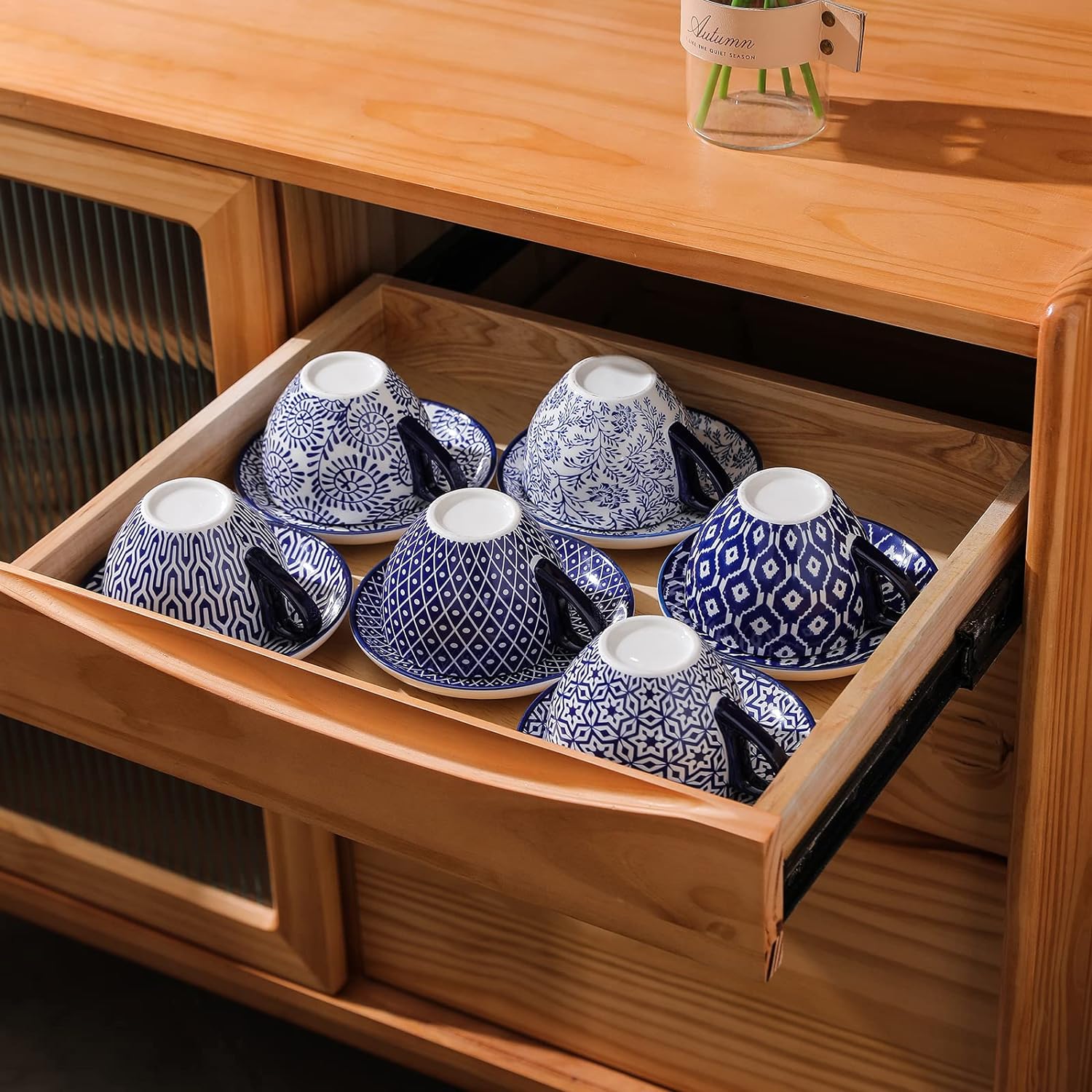 - DECORATIVE DESIGN - Each cappuccino cup with a matching saucer has unique patterns with bright colors, which light up your table and make a great addition to any party or your cabinet, and is perfect for all occasions.
