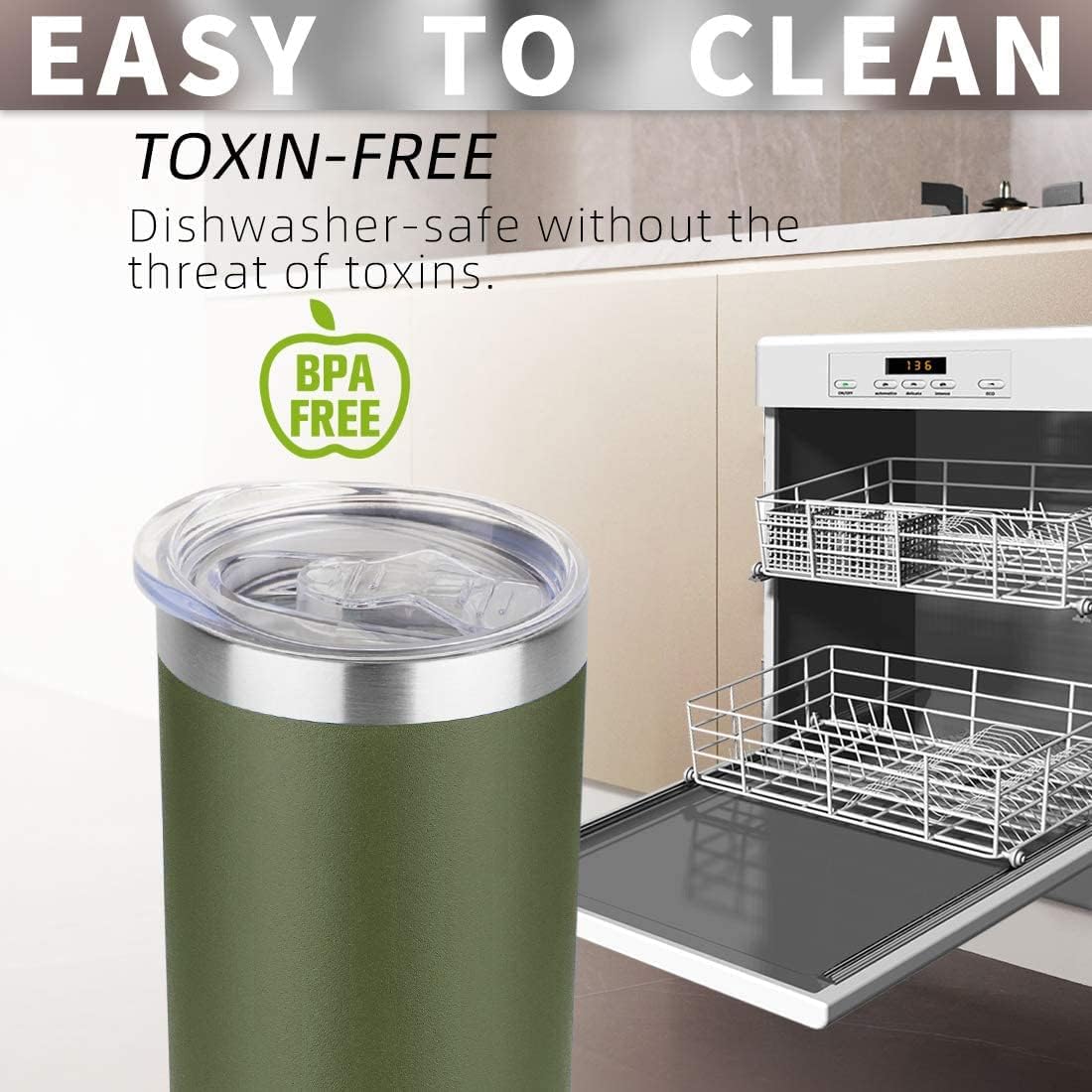 - 【LIFETIME DURABILITY】 18/8 food grade stainless steel body, BPA free, healthier than plastic cup. The insulated tumbler never sweat due to the Vacuum insulated design. Powder coating on the outside fits more comfortably in your hand, looks good, anti-slip.