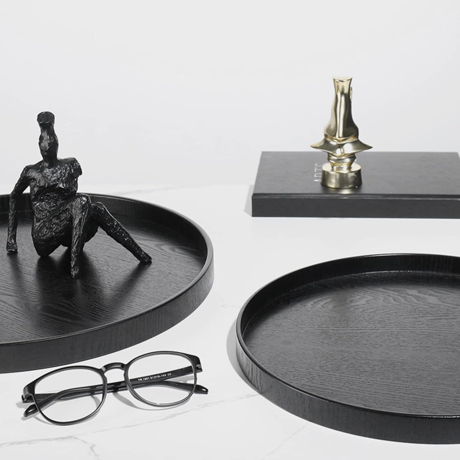 - 【With Raised Edges】Versatile serving tray, with raised edges to prevent spillage of your favorite food and drink, and it is easy to hold.black round display tray. Perfect smooth surface and color makes it looks great in your restaurant or your home, modern and elegant.black round wooden coffee table tray.