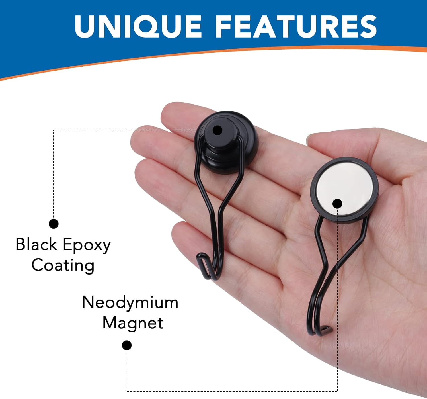 - 【 High-quality Magnetic Coating 】 The magnet hooks adopts a three-layer epoxy resin + nickel + copper coating, providing a lustrous and anti-rust coated steel cup for the magnetic hook, offering protection for the magnetic hook and helping to prevent cracking or breaking.