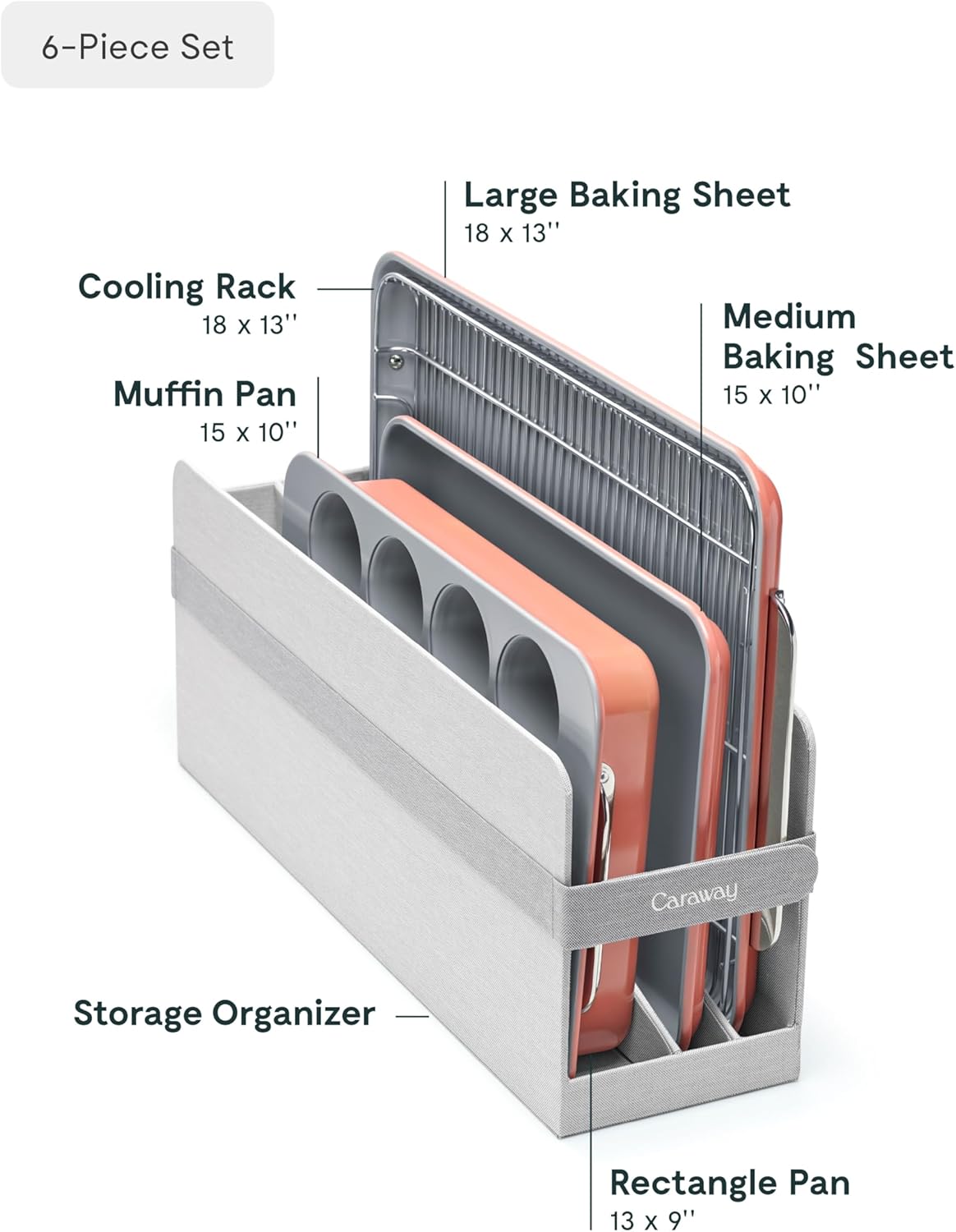 Caraway Nonstick Ceramic Bakeware Set (5 Pieces) - Baking Sheets, Assorted Baking Pans, & Storage - Aluminized Steel Body - Non Toxic, PTFE & PFOA Free - Perracotta