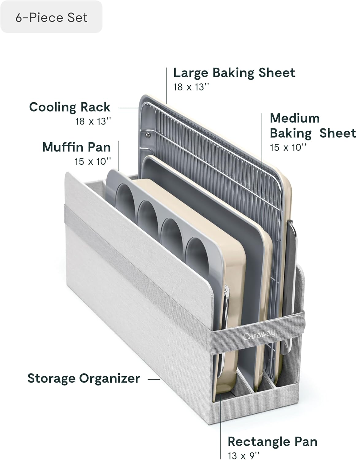 Caraway Nonstick Ceramic Bakeware Set (5 Pieces) - Baking Sheets, Assorted Baking Pans & Storage - Aluminized Steel Body - Non Toxic, PTFE & PFOA Free - Cream
