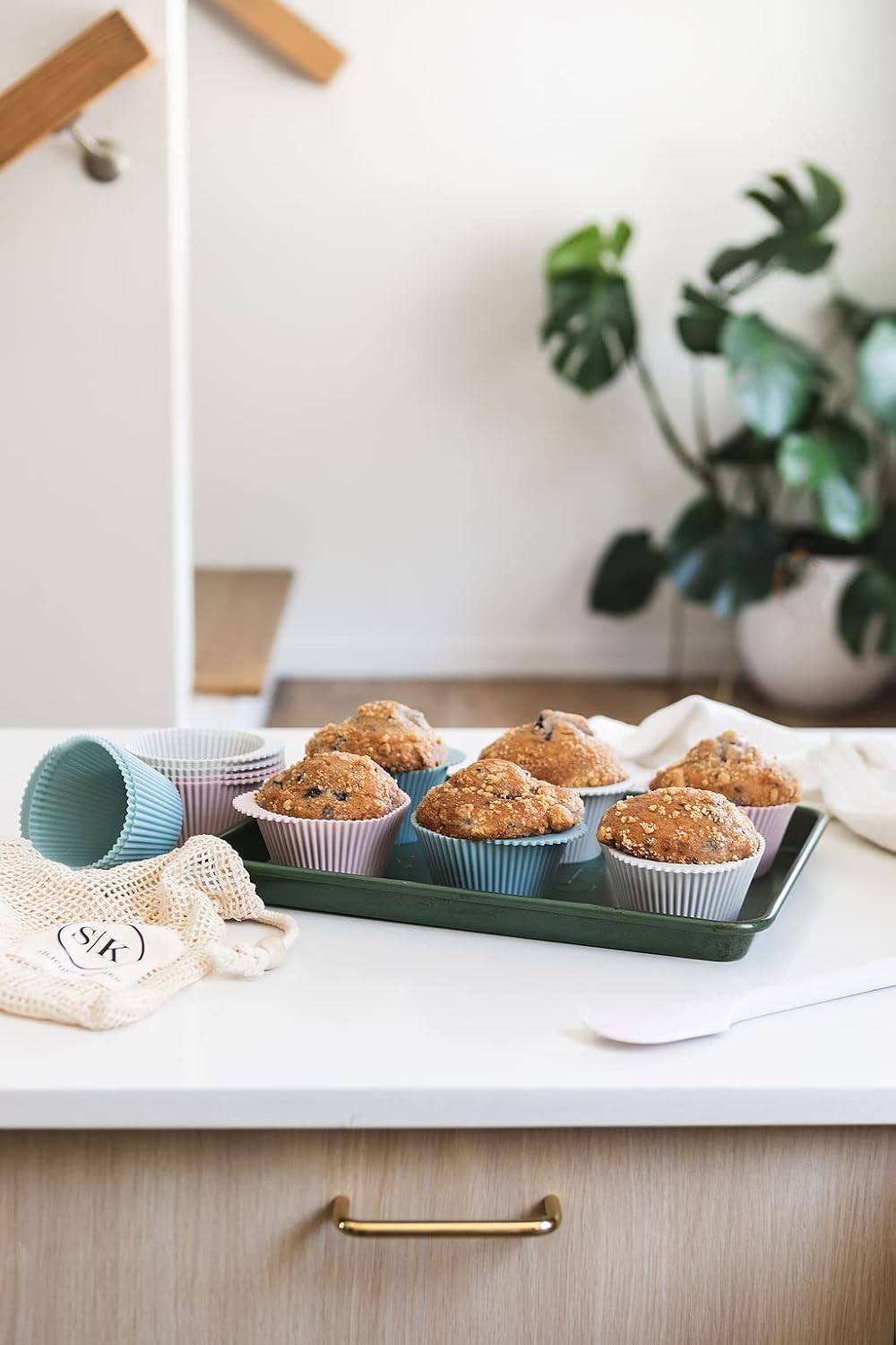 The Silicone Kitchen Reusable Silicone Baking Cups Silicone Muffin Liners for Cupcakes, BPA Free, Jumbo, 12 Pack, Pink Gray Blue