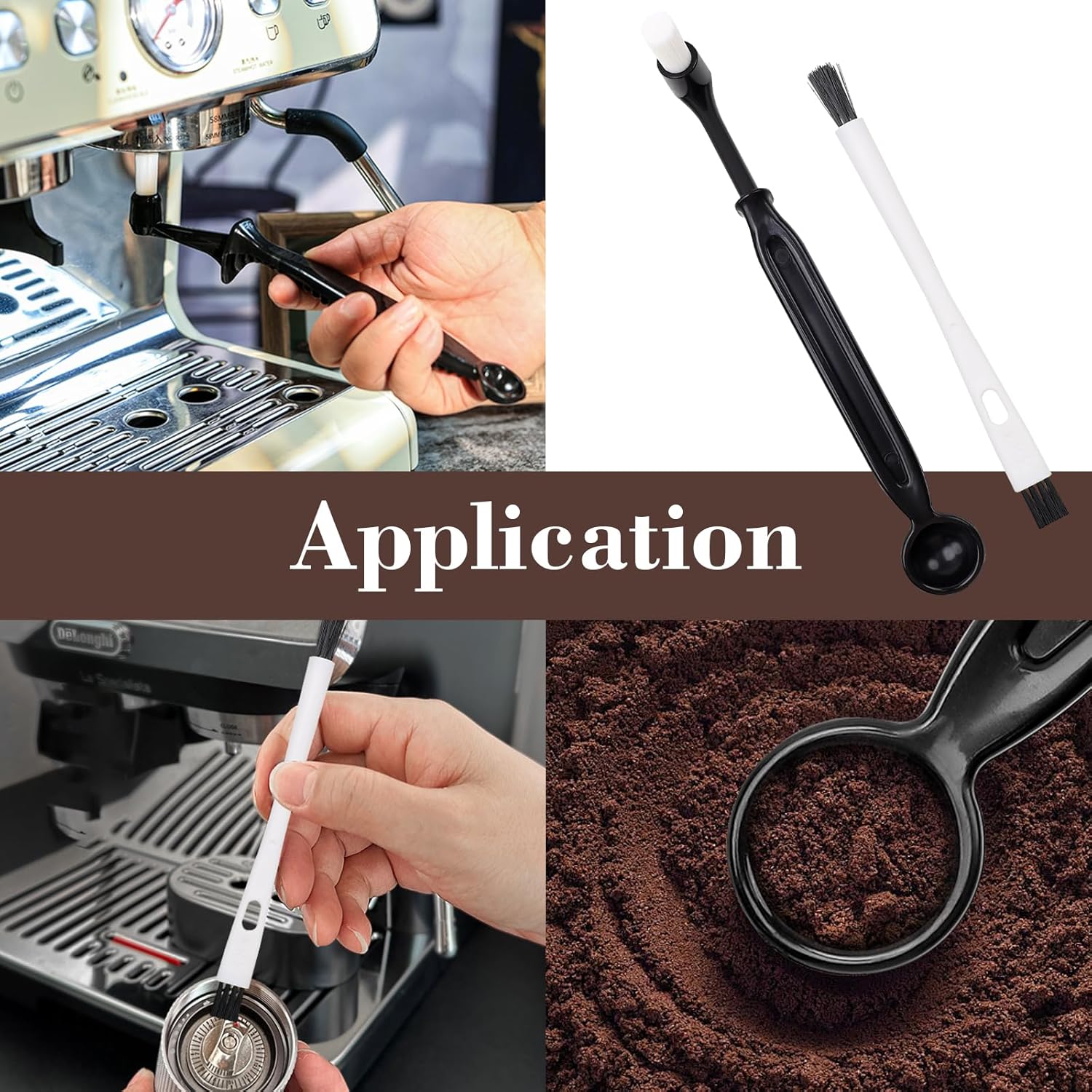 - 4-pack: Coffee Grinder Cleaning Brush, Heavy Duty Wooden Handle and Natural Bristles Wood Dusting Espresso Brush and Nylon Espresso Maker Brush with Spoon,Essential props to keep your espresso machine equipment free of coffee grounds, Professional Barista Dusting Cleaning Tools