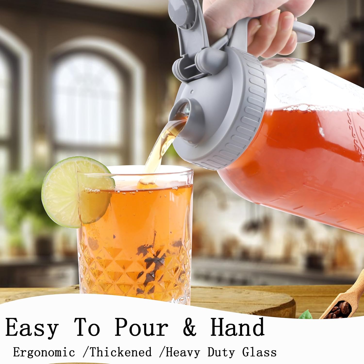 - ERGONOMICALLY HANDLE - The ergonomically designed thicken handle easy to lift and pour. No more messes! The flip cap stays open and out of the way when you are pouring or drinking.
