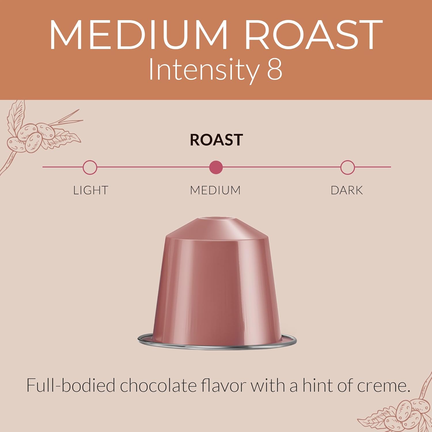 - Chocolatey Espresso Coffee: Enjoy the blend of old-world tradition and medium roast coffee with our Intensity 8 Chocolate espresso coffee pods. Relish its full-bodied flavor with a hint of creme in every sip.