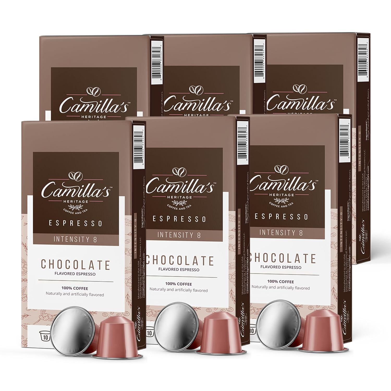 Camilla’s Heritage - Intensity 8 Chocolate Flavored Espresso Coffee, Gourmet Espresso Cups, 60 Coffee Pods