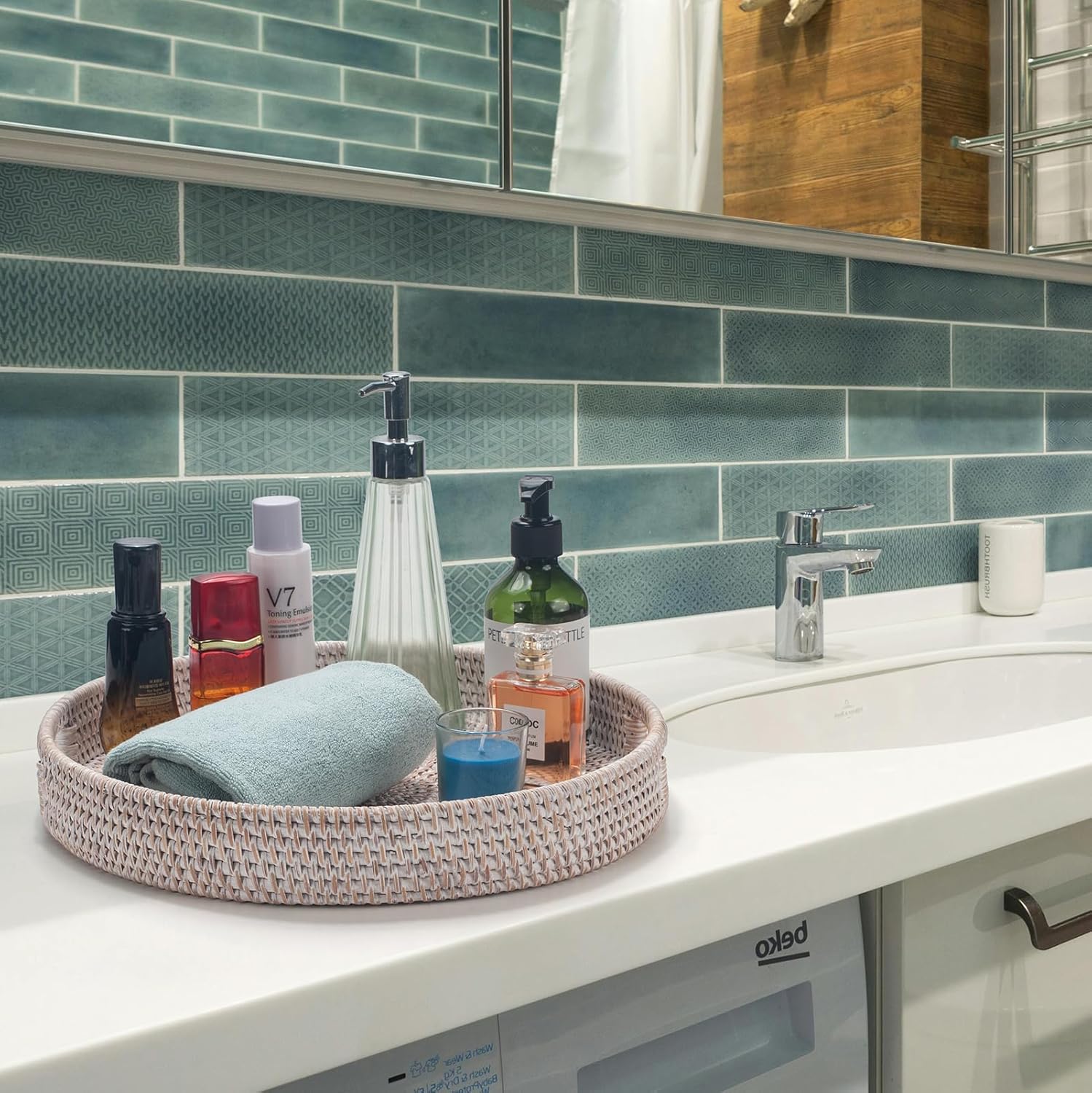 - Perfect Decoration: This classic basket tray is suitable for storing all your decor items on countertop, tabletop, coffee table, elegant looking adds natural pastoral style to your home.
