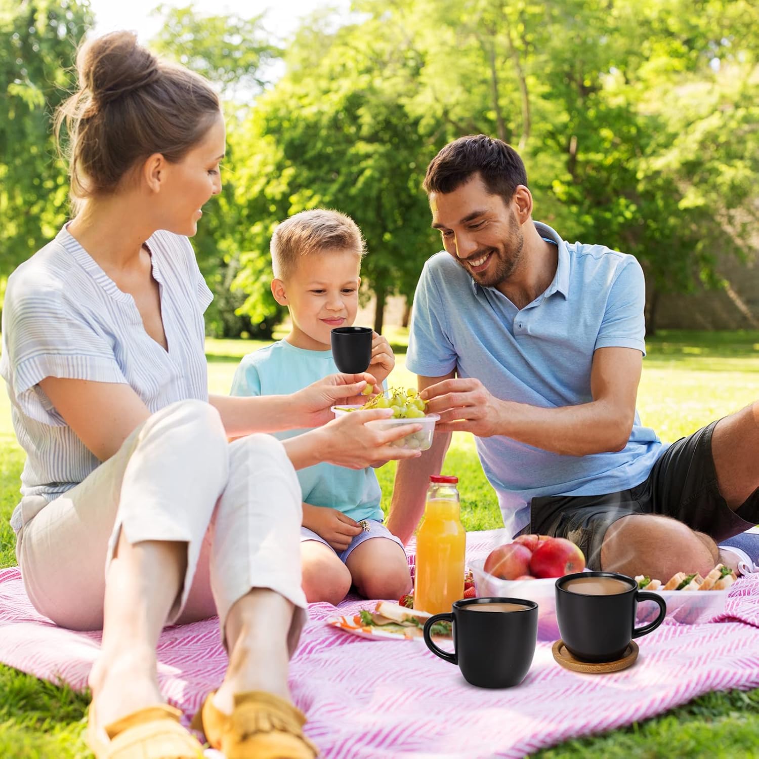 - CHIC AND SLEEK DESIGN: Matte glaze surface and comfortable handle make up a elegant mugs set. what's more pleasing than a sip of espresso in the morning? There is no doubt that caffeine can be a refreshing. The stylish and modern black coffee cups can impress your guests.