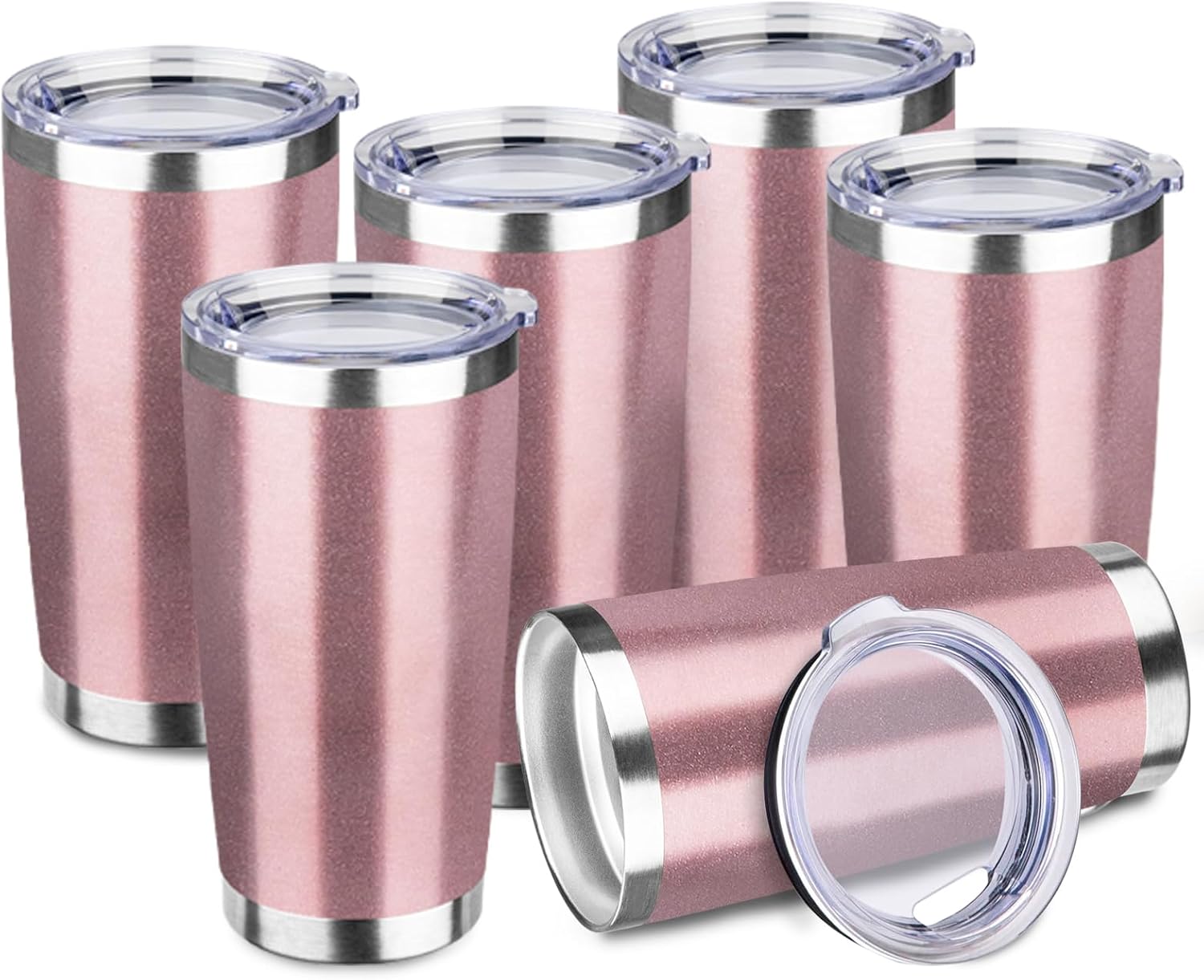StarSpeed 20oz Tumbler Bulk with Lid, Stainless Steel Insulated Tumblers Double Wall Vacuum Insulated Travel Mug, Powder Coated Coffee Cups for Hot and Cold Drinks(Rose Gold,6)