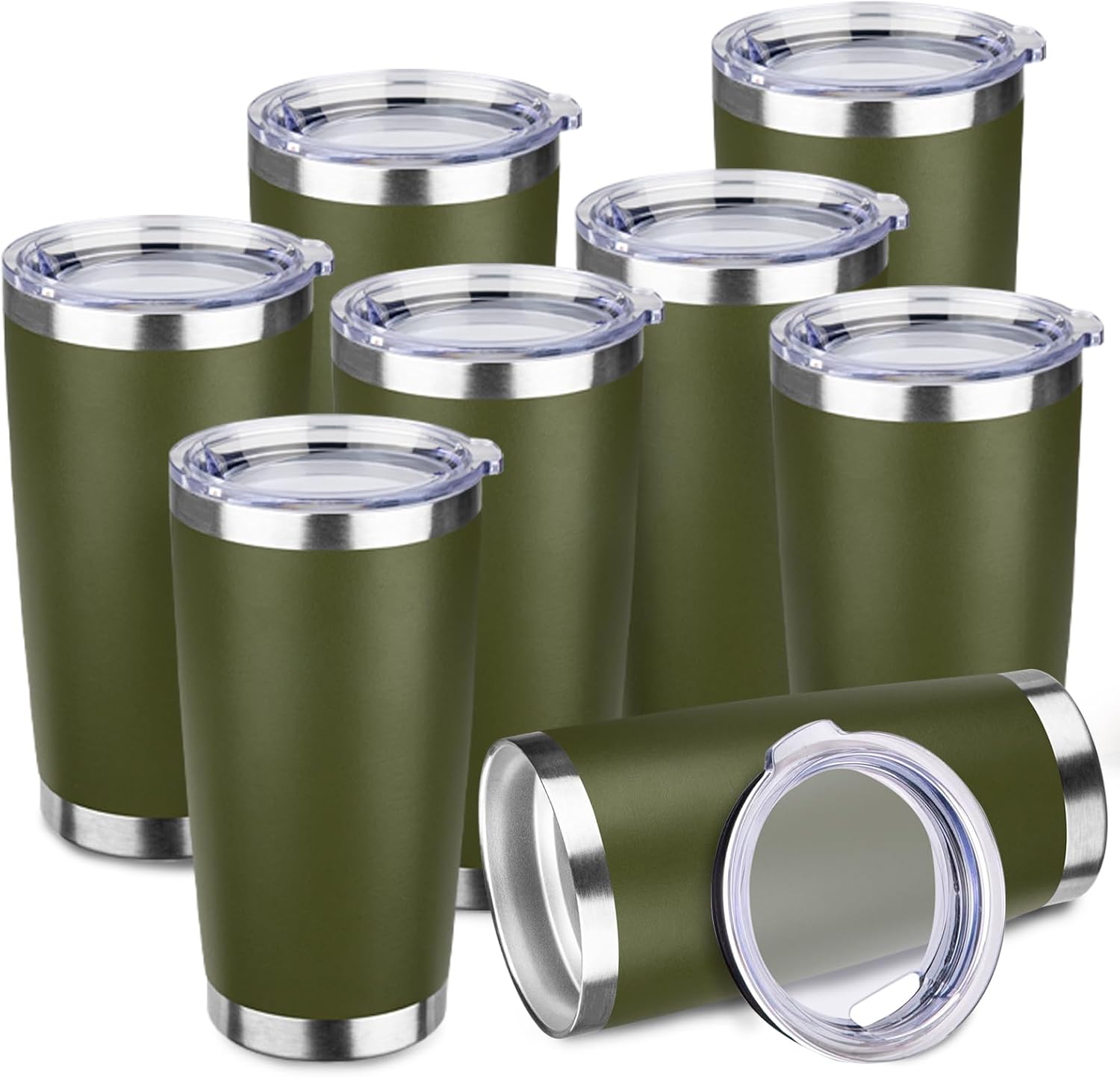 StarSpeed 20oz Tumbler Bulk with Lid, Stainless Steel Insulated Tumblers Double Wall Vacuum Insulated Travel Mug, Powder Coated Coffee Cups for Hot and Cold Drinks(Navy Green,8)
