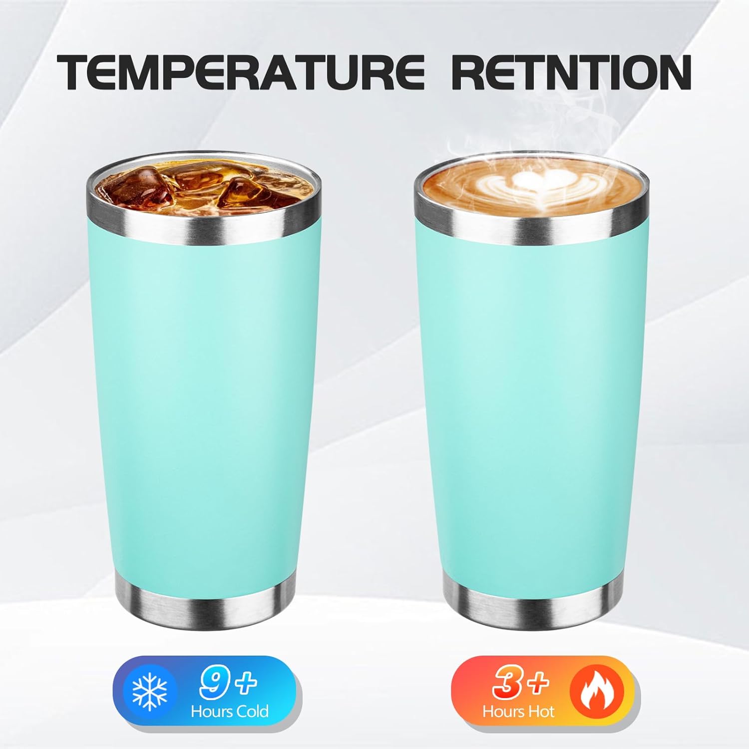 StarSpeed 20oz Tumbler Bulk with Lid, Stainless Steel Insulated Tumblers Double Wall Vacuum Insulated Travel Mug, Powder Coated Coffee Cups for Hot and Cold Drinks(Light Green,6)