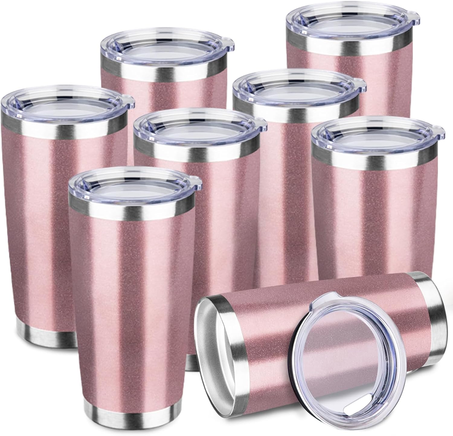 StarSpeed 20oz 8 pack Insulated Tumblers with Lid Stainless Steel Double Wall Tumbler Travel Coffee Cups Powder Coated Tapered Metal Thermal Mug Indoor Outdoor for Hot and Cold Drinks
