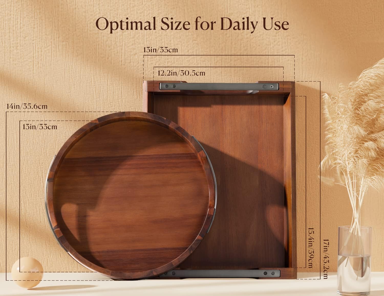 - Unbreakable Serving Tray: Premium acacia wood edges articulate tightly to a sturdy MDF bottom, reducing the risk of cracking by 70% compared to solid wood ones. Our strict manufacturing standards ensure a well-made, sturdy wood serving tray that can last for years without chips