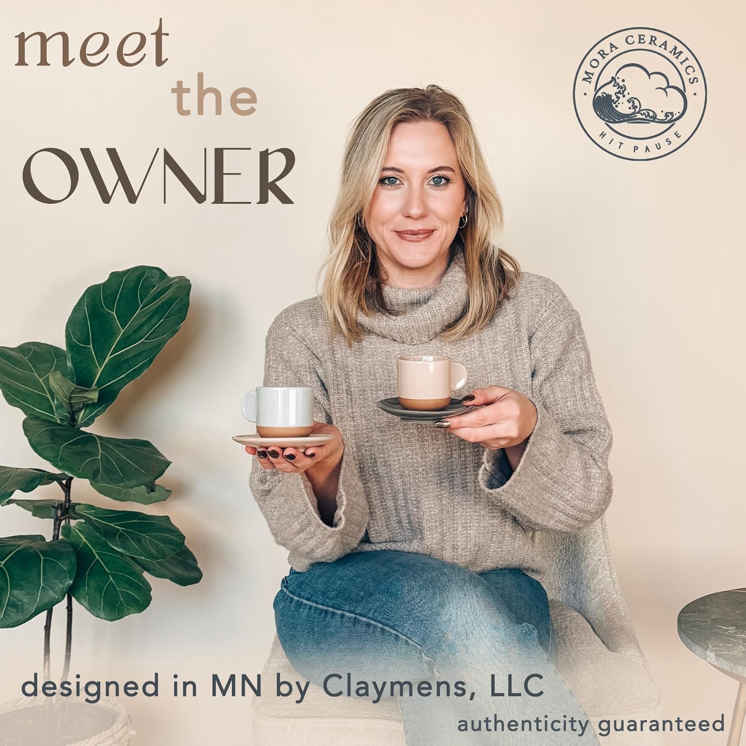 Mora Ceramic Mini Espresso Cups Set of 4, 3oz - Tiny Italian Inspired Mugs With Saucers For Small Shots of Coffee - Modern Boho Style For Any Kitchen or Cafe. Microwave Safe Porcelain - Asstd Neutrals