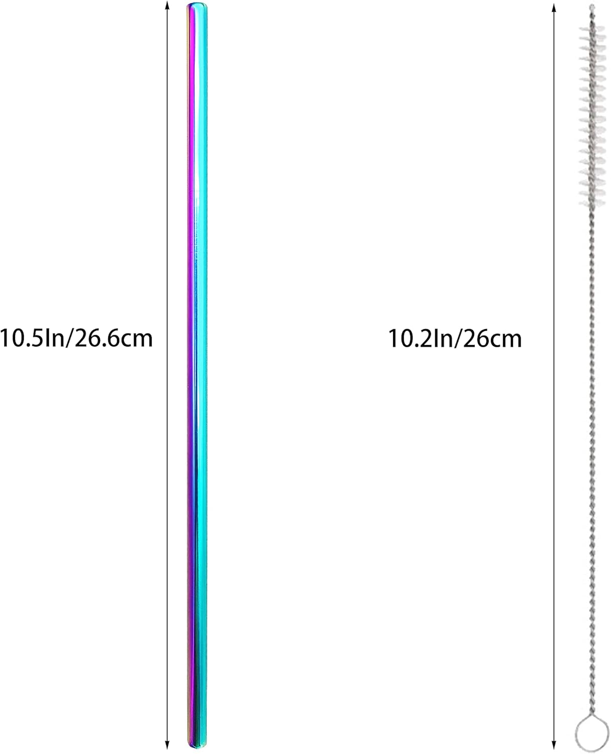 - The Length of Straws is 10.5Inch/26.6cm, The Diameter of Straws is 0.24 Inch/0.6cm, The Length of Scrub Brushes is 10.2Inch/26cm. We Have Different Colors For You To Choose, Various Bright Colors Will Bring You A Pleasant Using Feeling.